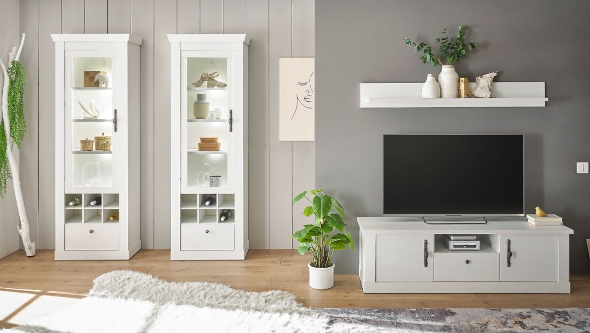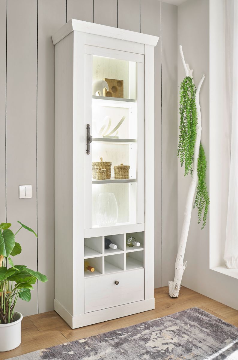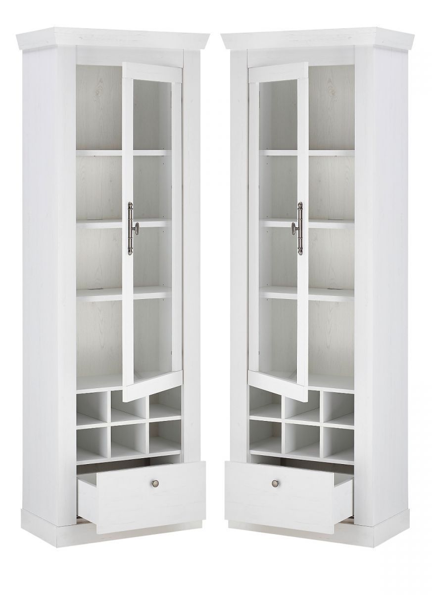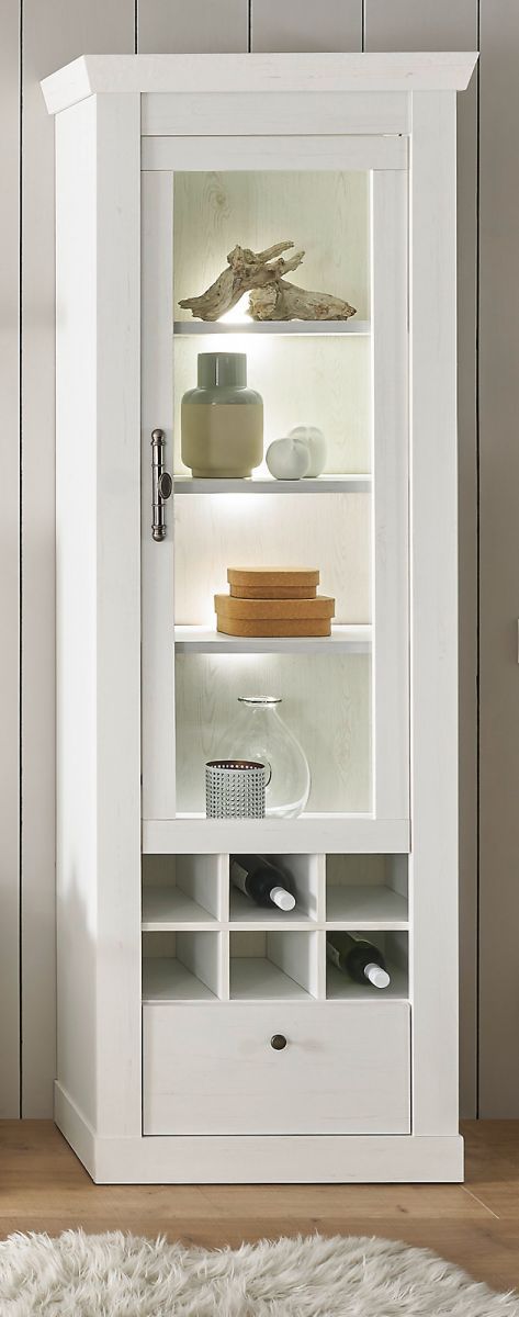 Vitrinenschrank weiß Pinie Landhaus Vitrine Schrank mit Soft-Close Fiastra 70 x 201cm