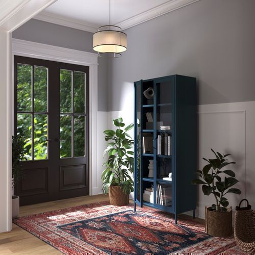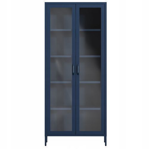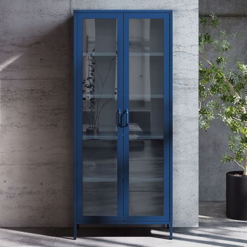Vitrinenschrank Wohnzimmerschrank mit 4 Fachböden Vitrine Glitzernd Metall Dunkelblau