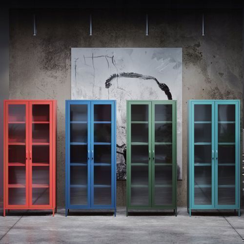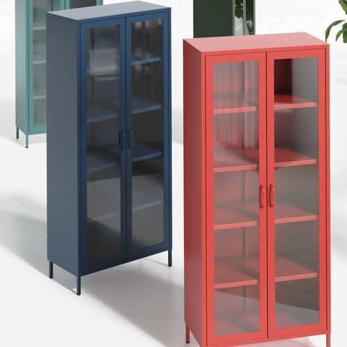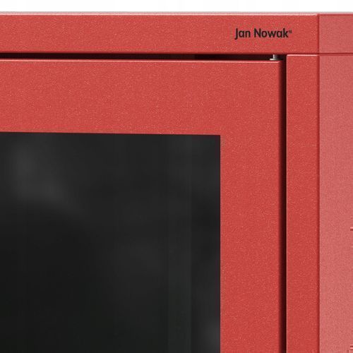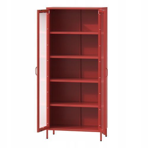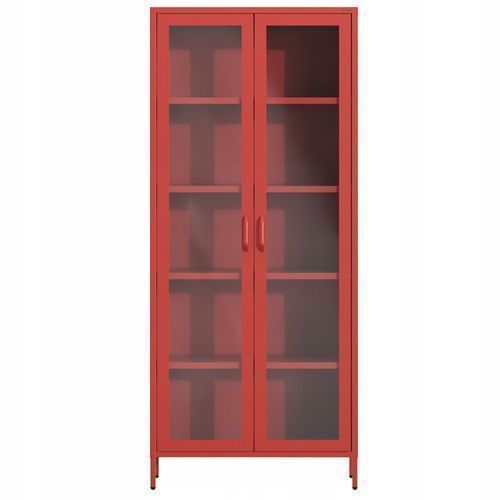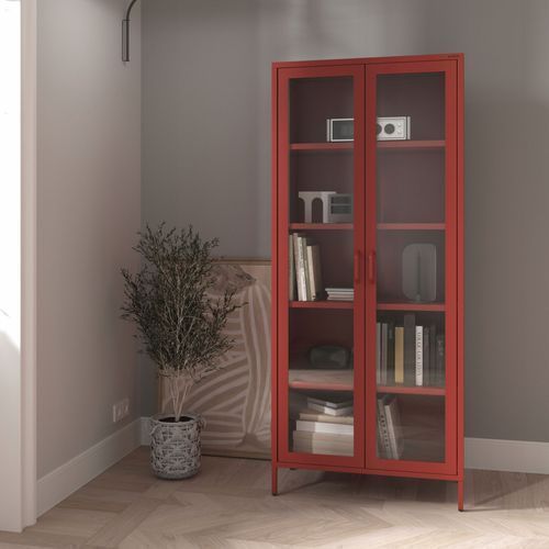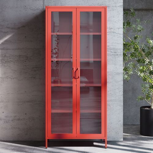 Vitrinenschrank Wohnzimmerschrank mit 4 Fachböden Vitrine Glitzernd Metall Rot