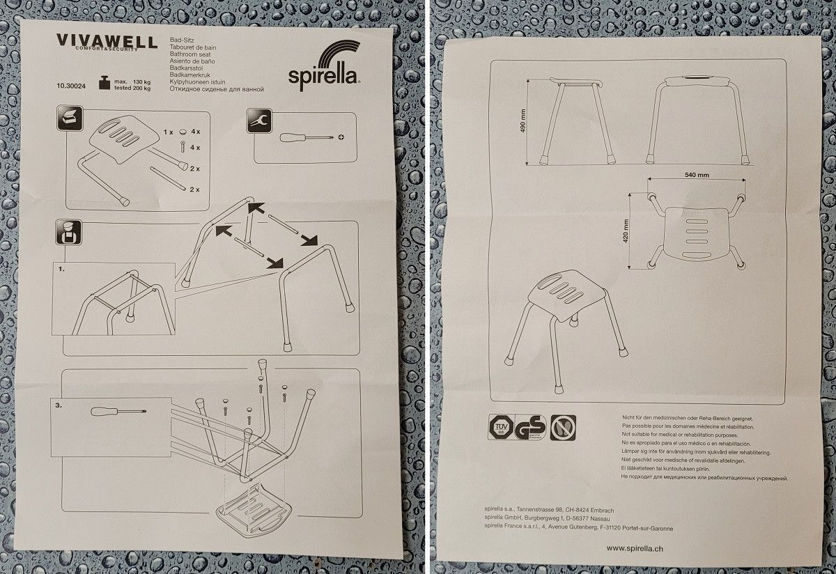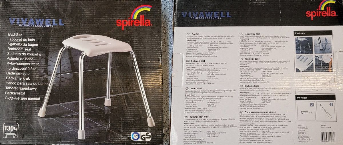 Vivawell Badsitz Hocker Weiß TÜV geprüfte Sicherheit 130KG