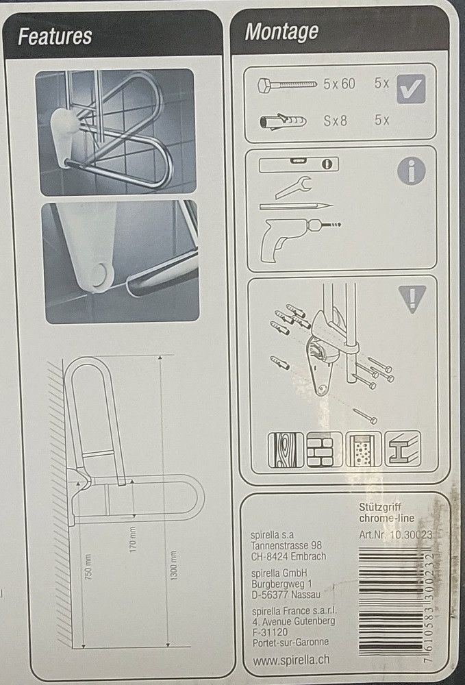 Vivawell Stützgriff Chrome TÜV geprüfte Sicherheit 120 KG