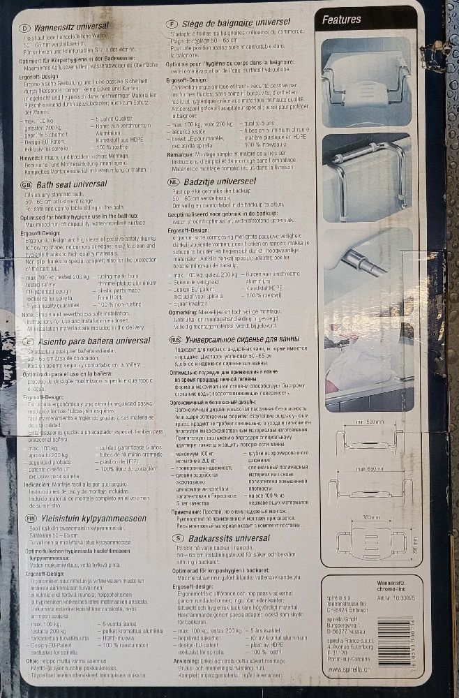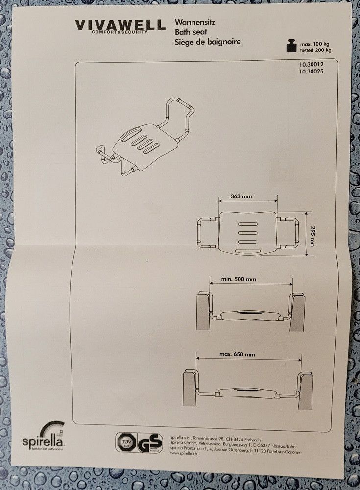 Vivawell Wannensitz Chrome-Line TÜV geprüfte Sicherheit 100KG Last