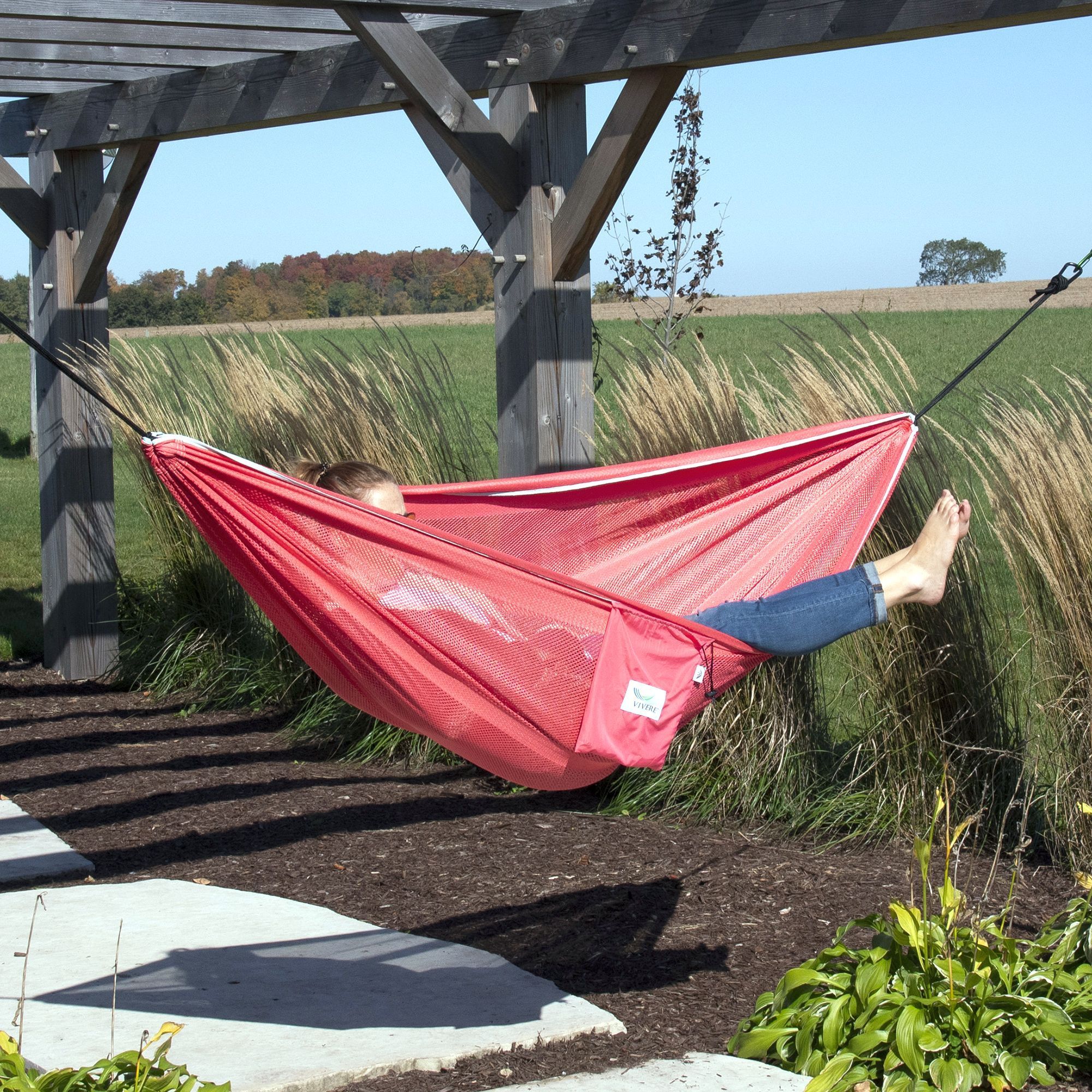 Durch die Liegefläche aus Netz wird bei dieser violett-türkisen Hängematte von Vivere Gewicht eingespart. Durch die große Liegefläche bietet sie Platz für zwei Personen. Farbe bunt Geeignet für 2 Personen Grösse Medium Abmessungen Liegefläche 280 x 201 Gesamtlänge 0 Spreizstab Länge: Belastbarkeit m