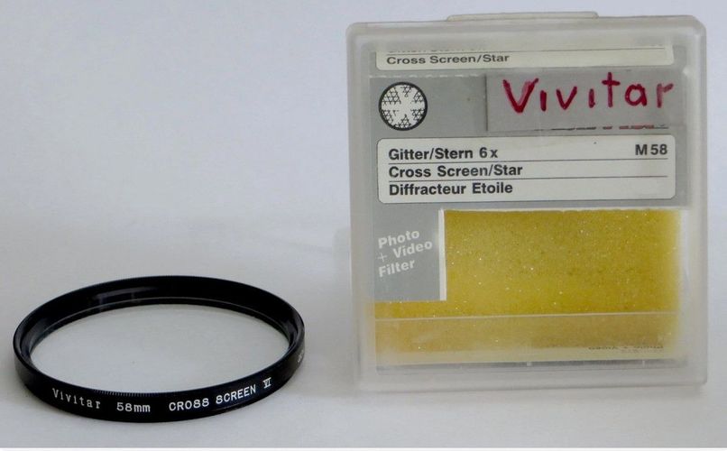 Vivitar Tricklinse 6 x Stern Gitter M58 Cross Screen Star , Diffracteur Etoile Wurde auch bei Ebay-Kleinanzeige eingestellt ( 3167492978 ) Effektfilter Trickfilter fotografische Filter Filtergröße M 58 - Ø 58 mm Die Filter sind neuwertig und ohne Mangel, die Gehäuse haben Lagerspuren und teil