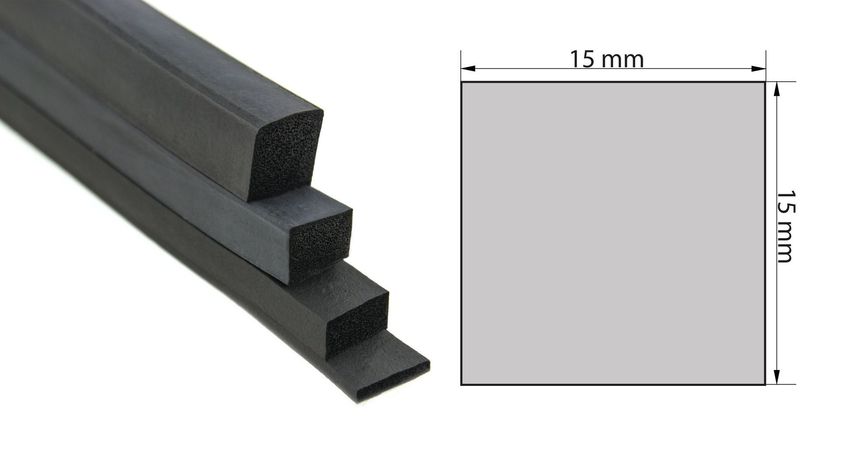 VKP15x15 Moosgummi EPDM - Vierkantprofil 15x15 mm Gummiprofil, Profilgummi, Quadrat