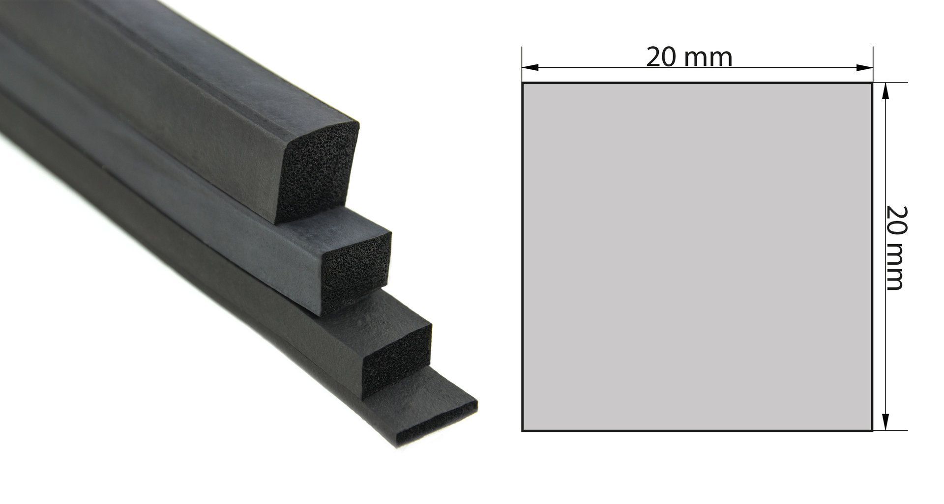 VKP20x20 Moosgummi EPDM - Vierkantprofil 20x20 mm Gummiprofil, Profilgummi, Quadrat