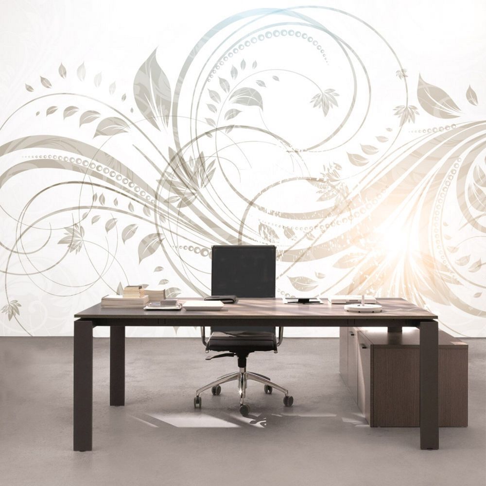 Vlies-Fototapete 101 - Reflexion Ornamente Tapete Orchidee Blumen Blumenranke Weis P