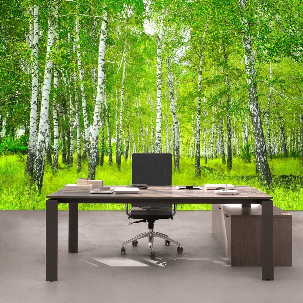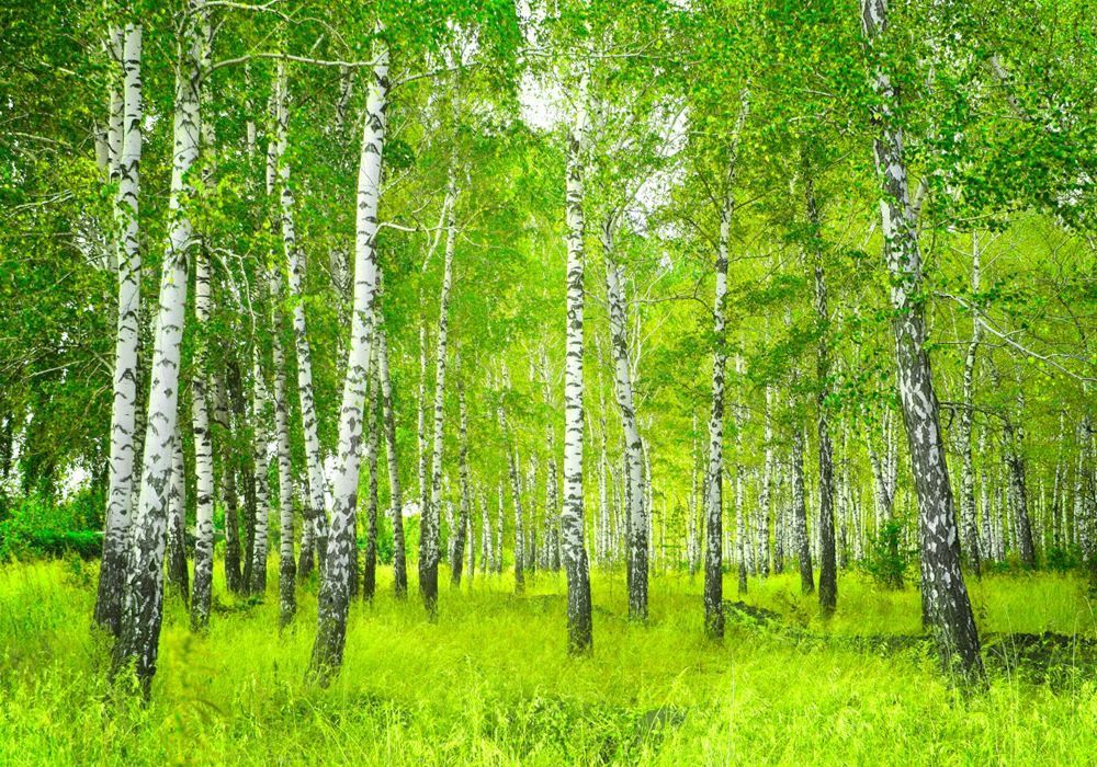 Vlies-Fototapete 112 - 350x245cm, Sunny Birch Forest Wald Tapete Birkenwald B?ume Wal