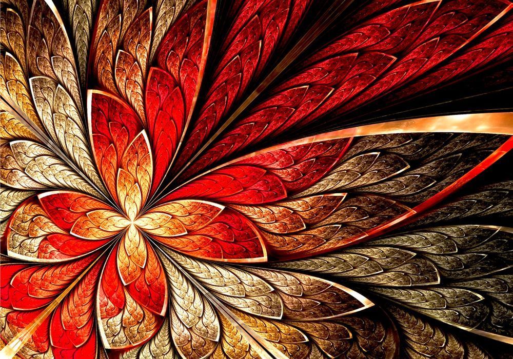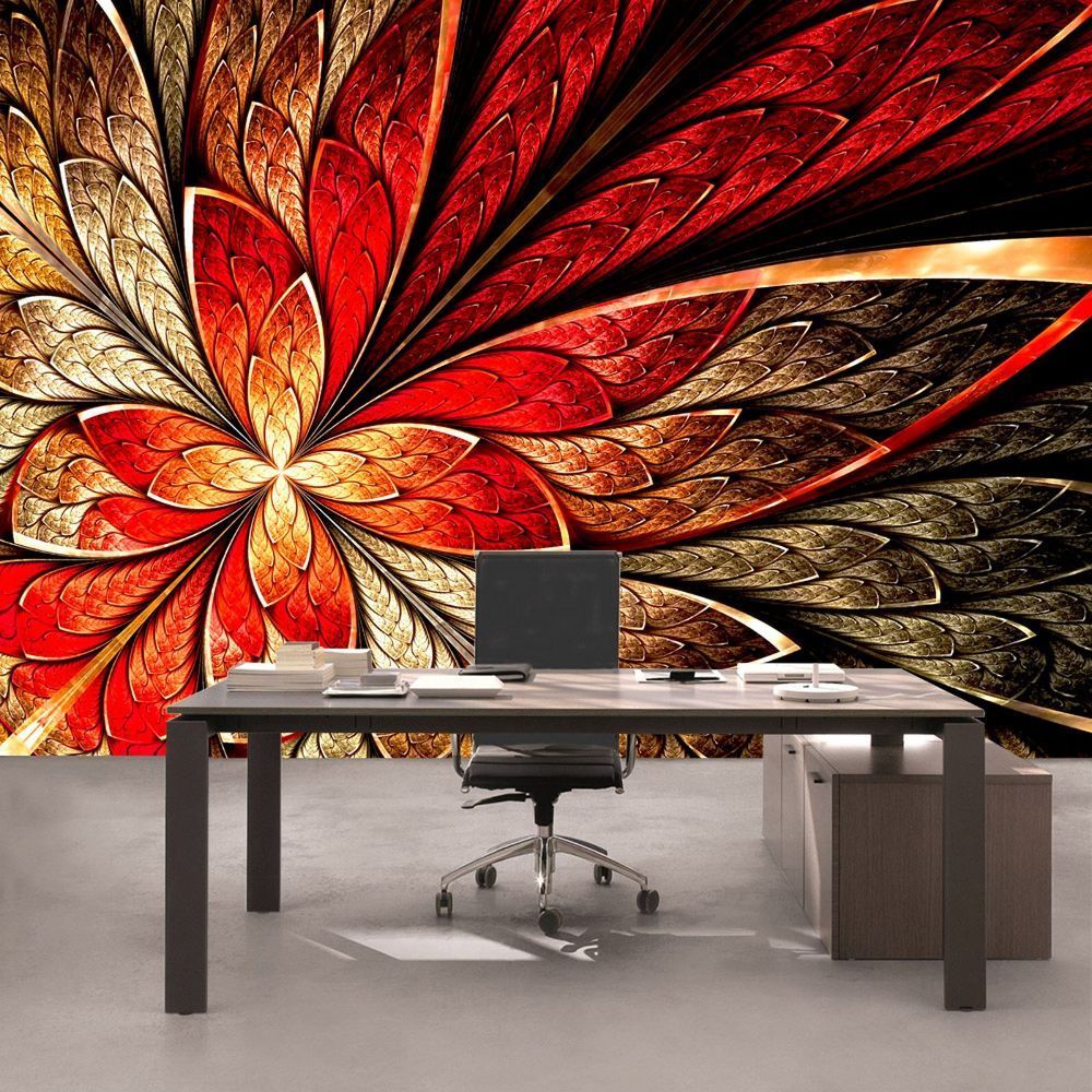 Vlies-Fototapete 115 - 350x245cm, Yellow and Red Floral Ornament Ornamente Tapete abs