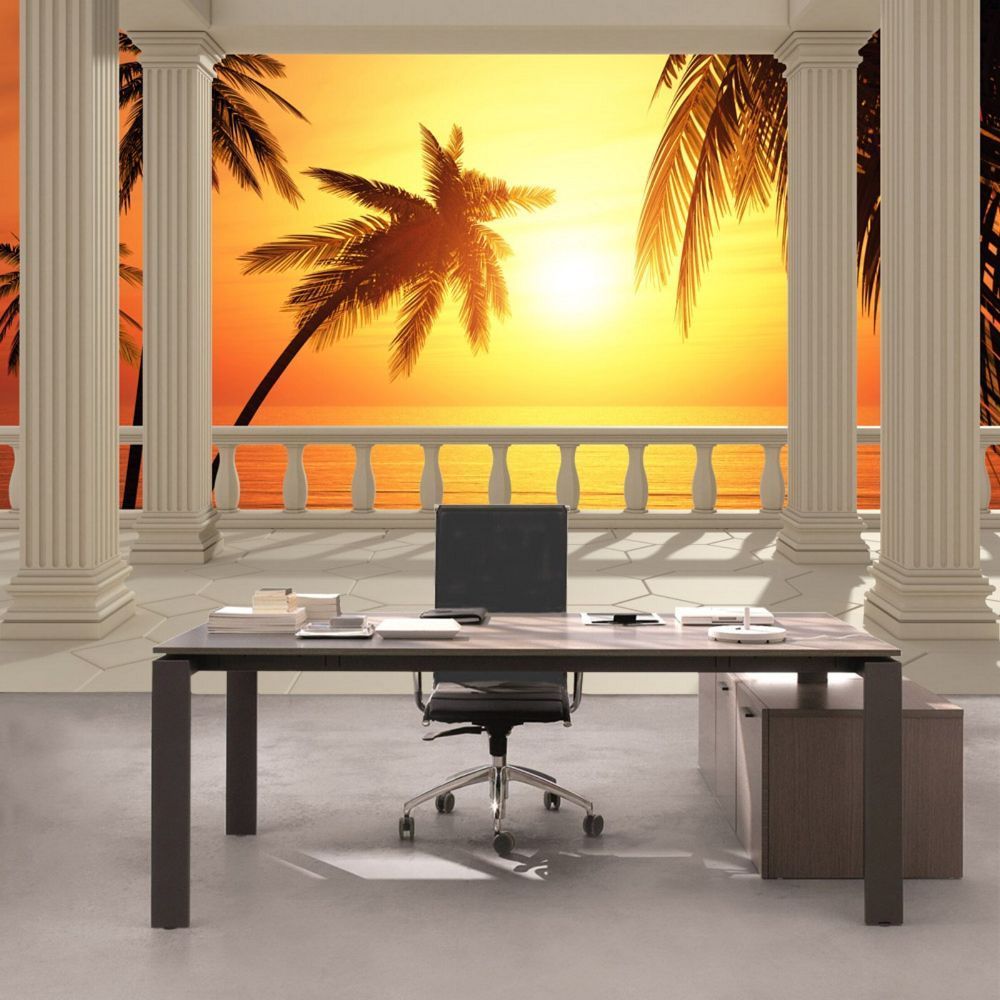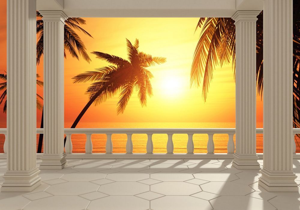 Vlies-Fototapete 123 - 400x280cm, Terrace View Romantic Sunset Meer Tapete Sonnenaufg