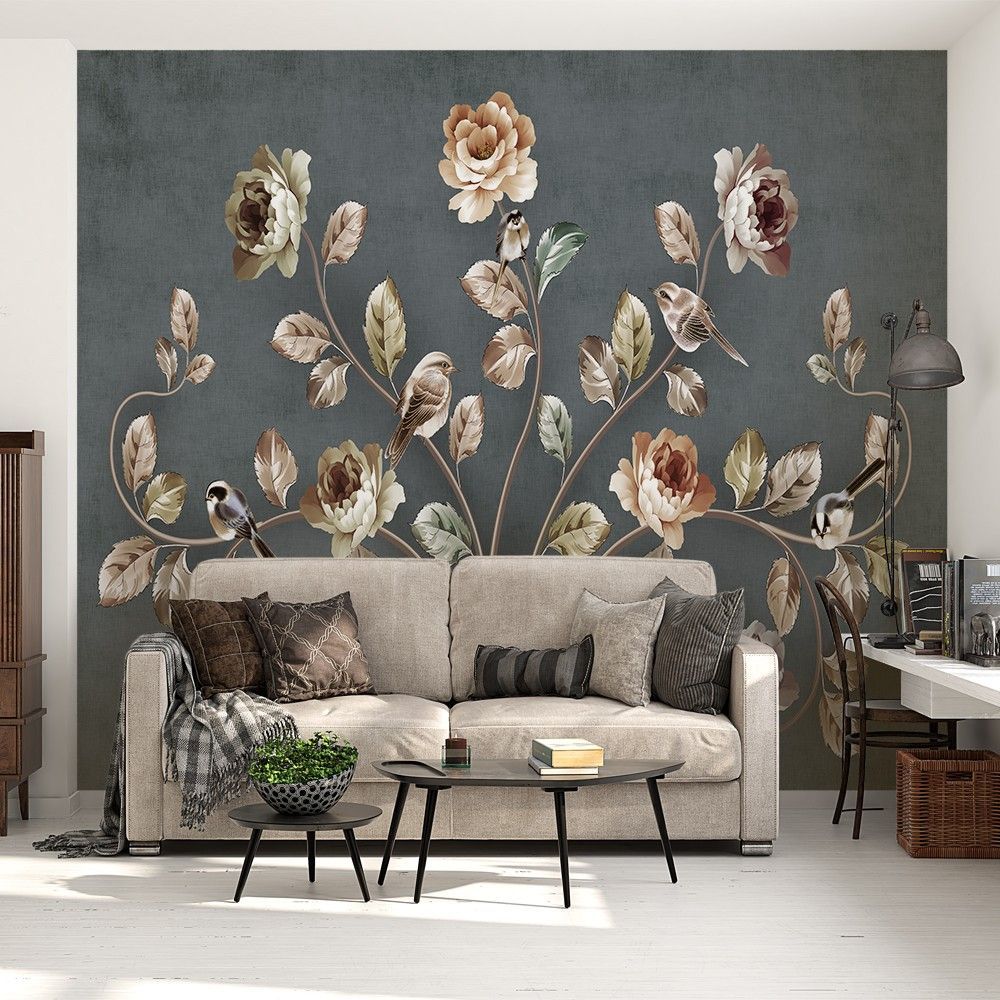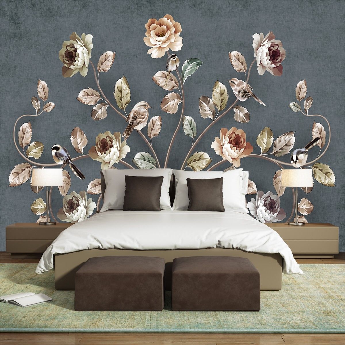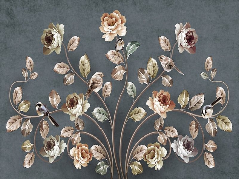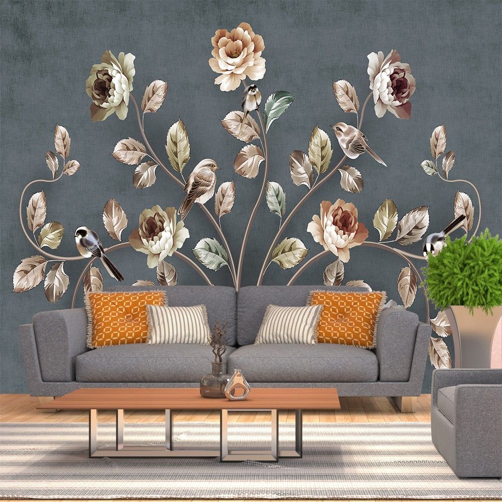 Vlies Fototapete Blumen Vögel Kunst Wandtapete Wandbild XXL Modern 6136