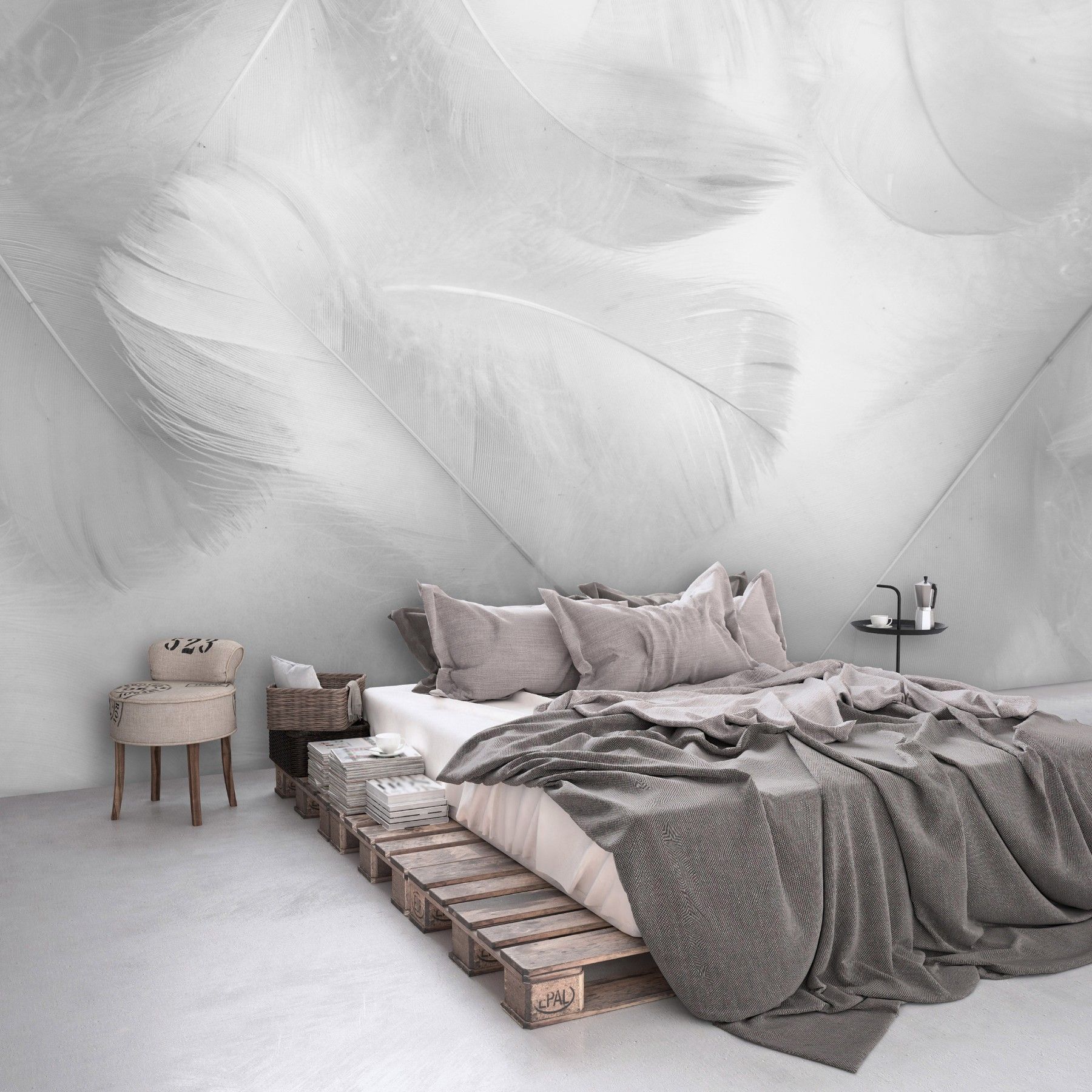 Vlies Fototapete Federn Natur Grau Modern TAPETE XXL Wohnzimmer Schlafzimmer