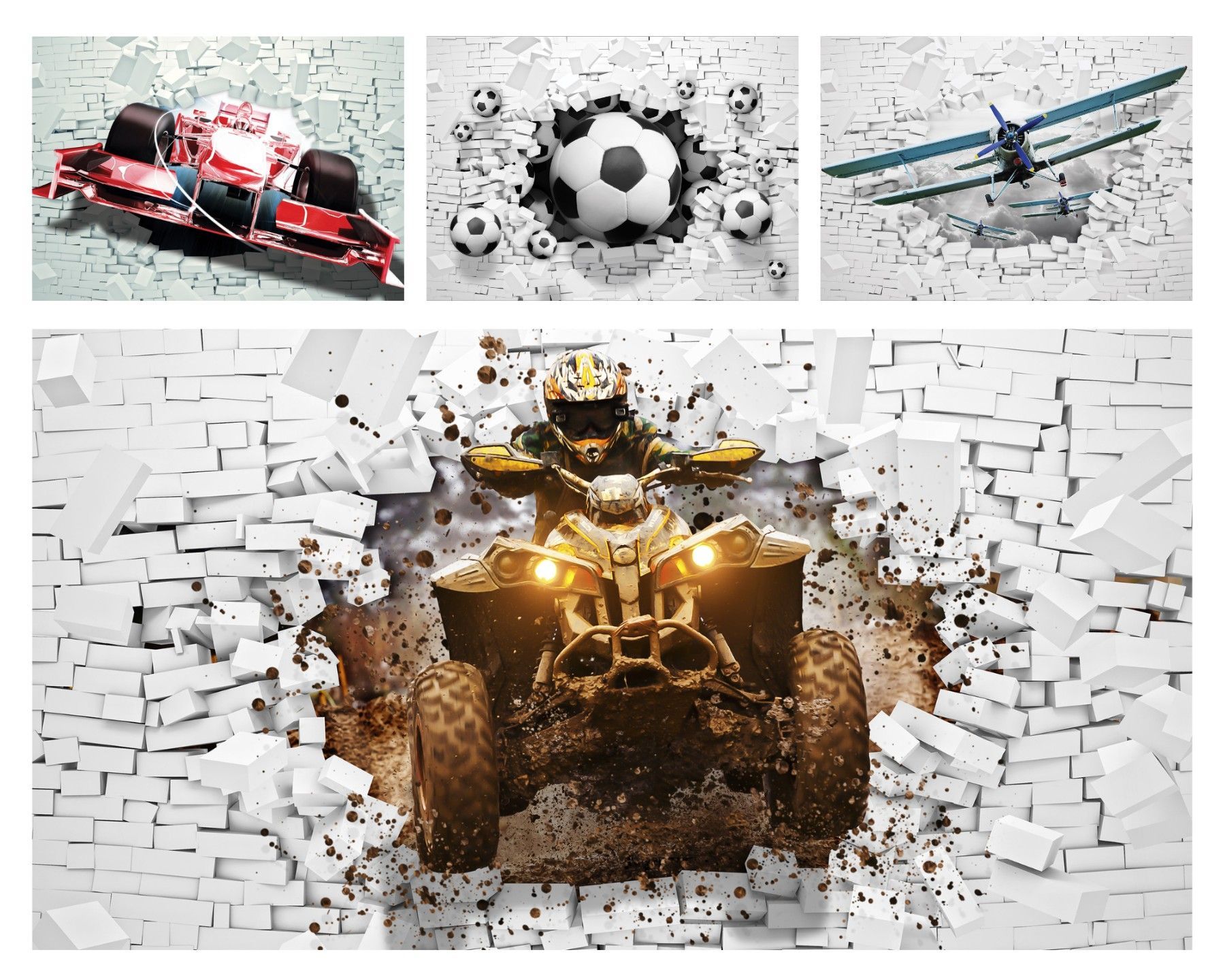 Vlies Fototapete Kinderzimmer 3D EFFEKT Junge Quad Fußball Auto Sport TAPETE XXL