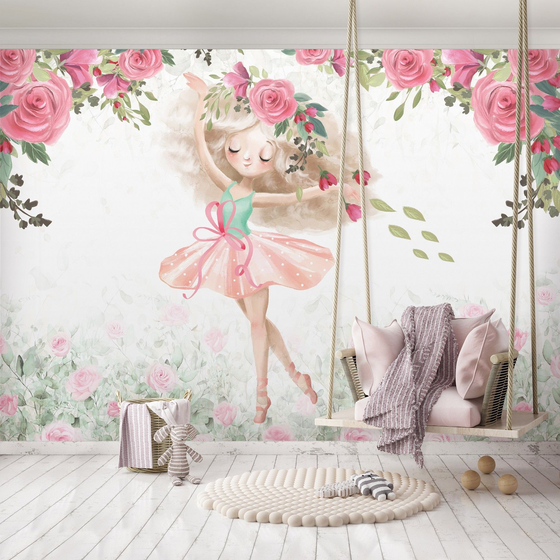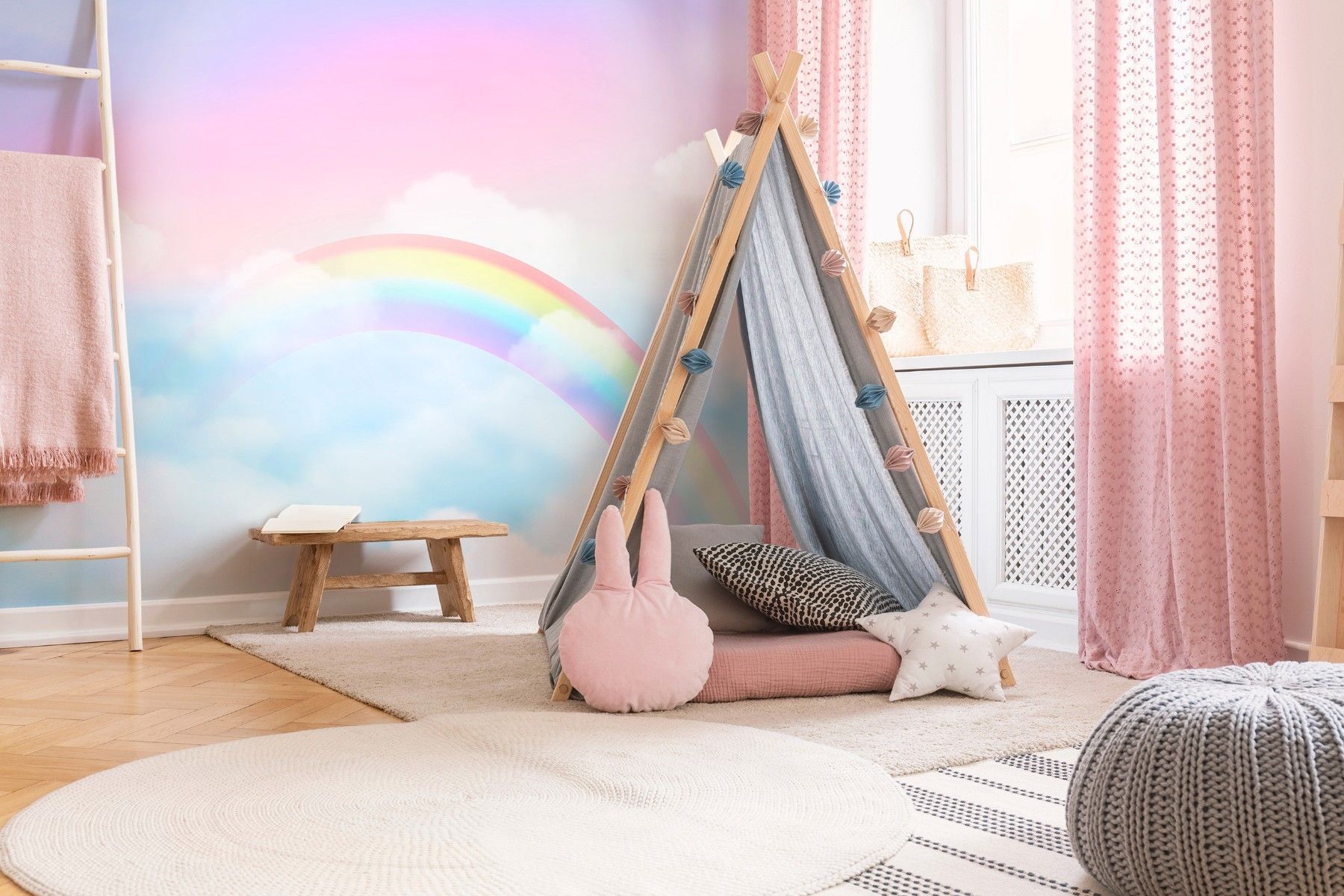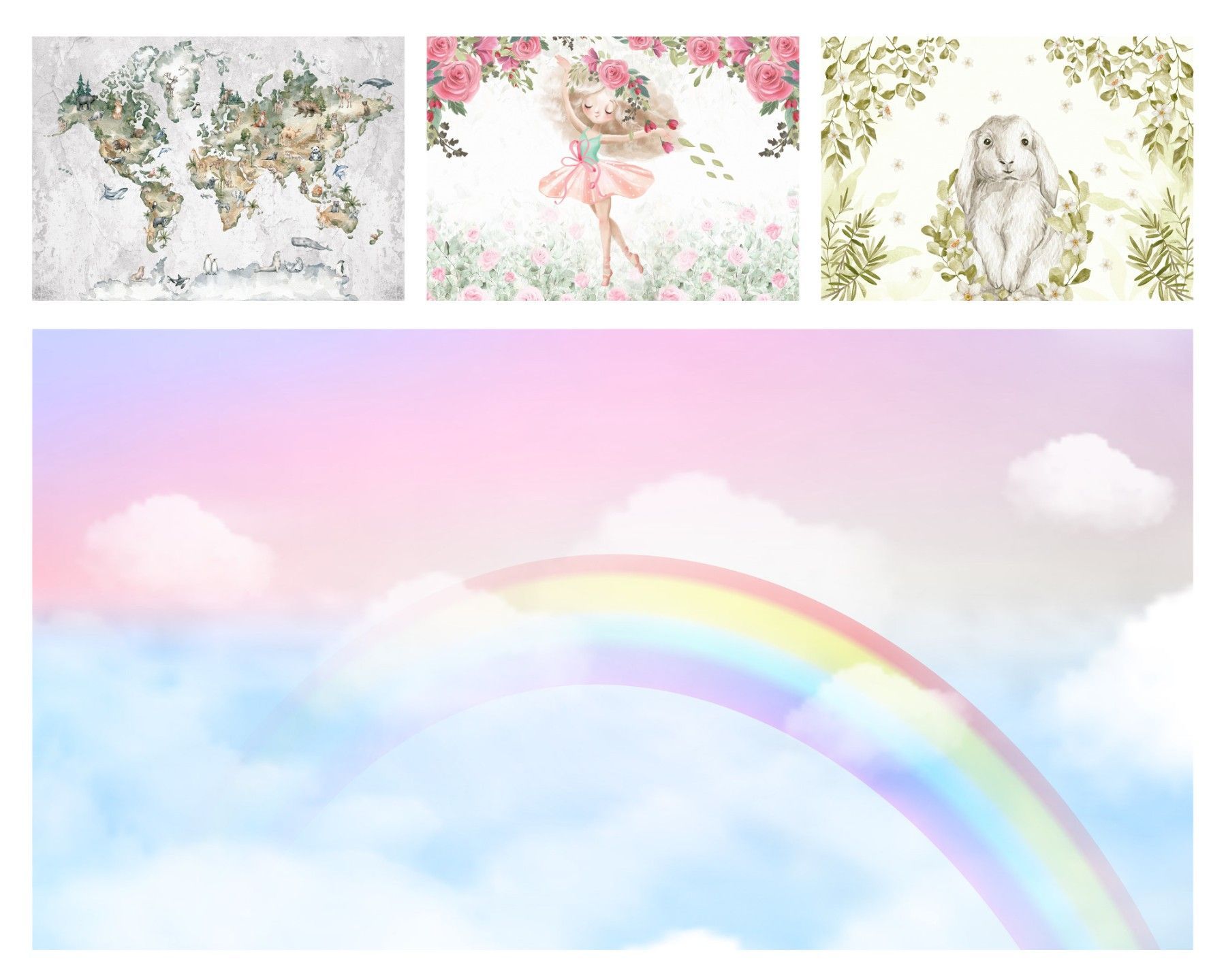 Vlies Fototapete Kinderzimmer Regenbogen Welkarte Ballerina Hase TAPETE XXL Mädchen