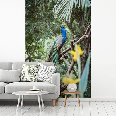 • Fototapete - 145x220 cm - Pfau - Blau - Wald (Gr. 145x220 cm)