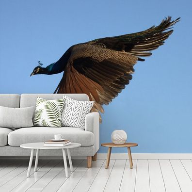 • Fototapete - 375x300 cm - Pfau - Vogel - Fliegen (Gr. 375x300 cm)
