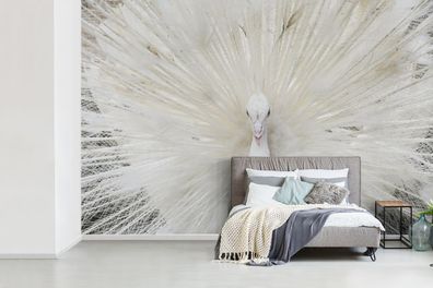• Fototapete - 420x280 cm - Pfau - Federn - Weiß (Gr. 420x280 cm)