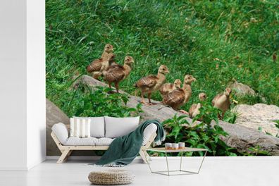 • Fototapete - 390x260 cm - Pfau - Vögel - Gras (Gr. 390x260 cm)