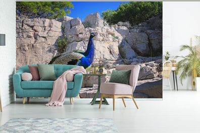 • Fototapete - 420x280 cm - Pfau - Steine - Blau (Gr. 420x280 cm)
