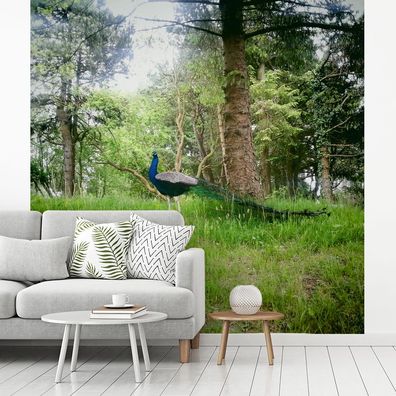 • Fototapete - 300x300 cm - Pfau - Gras - Wald (Gr. 300x300 cm)