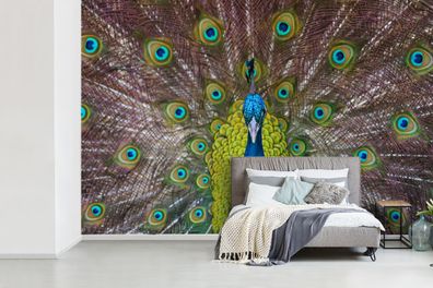 • Fototapete - 450x300 cm - Pfau - Federn - Garten (Gr. 450x300 cm)