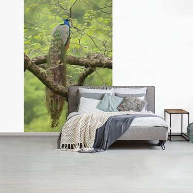 • Fototapete - 155x240 cm - Pfau - Federn - Baum (Gr. 155x240 cm)