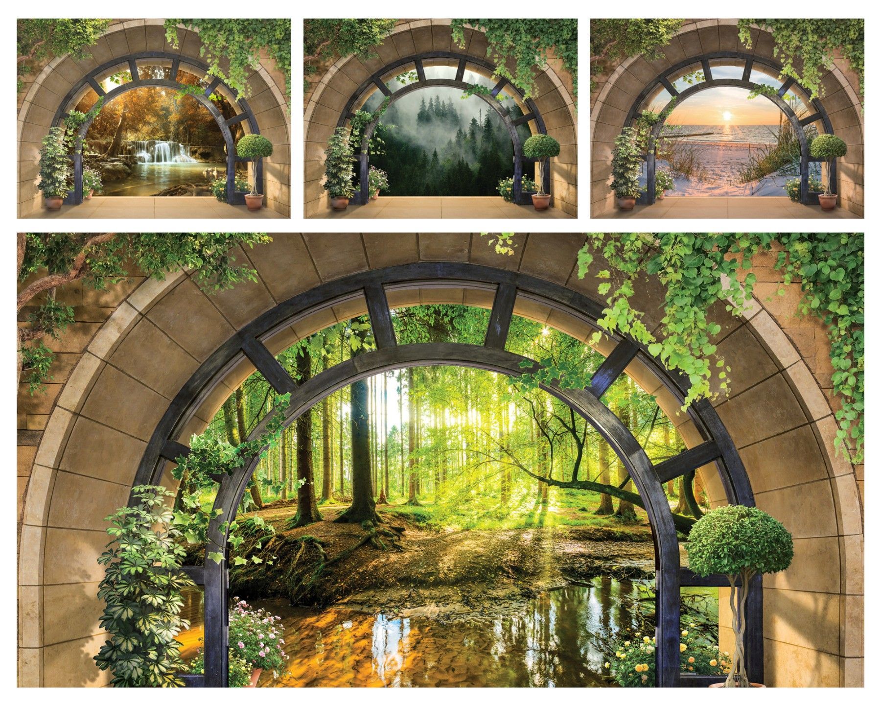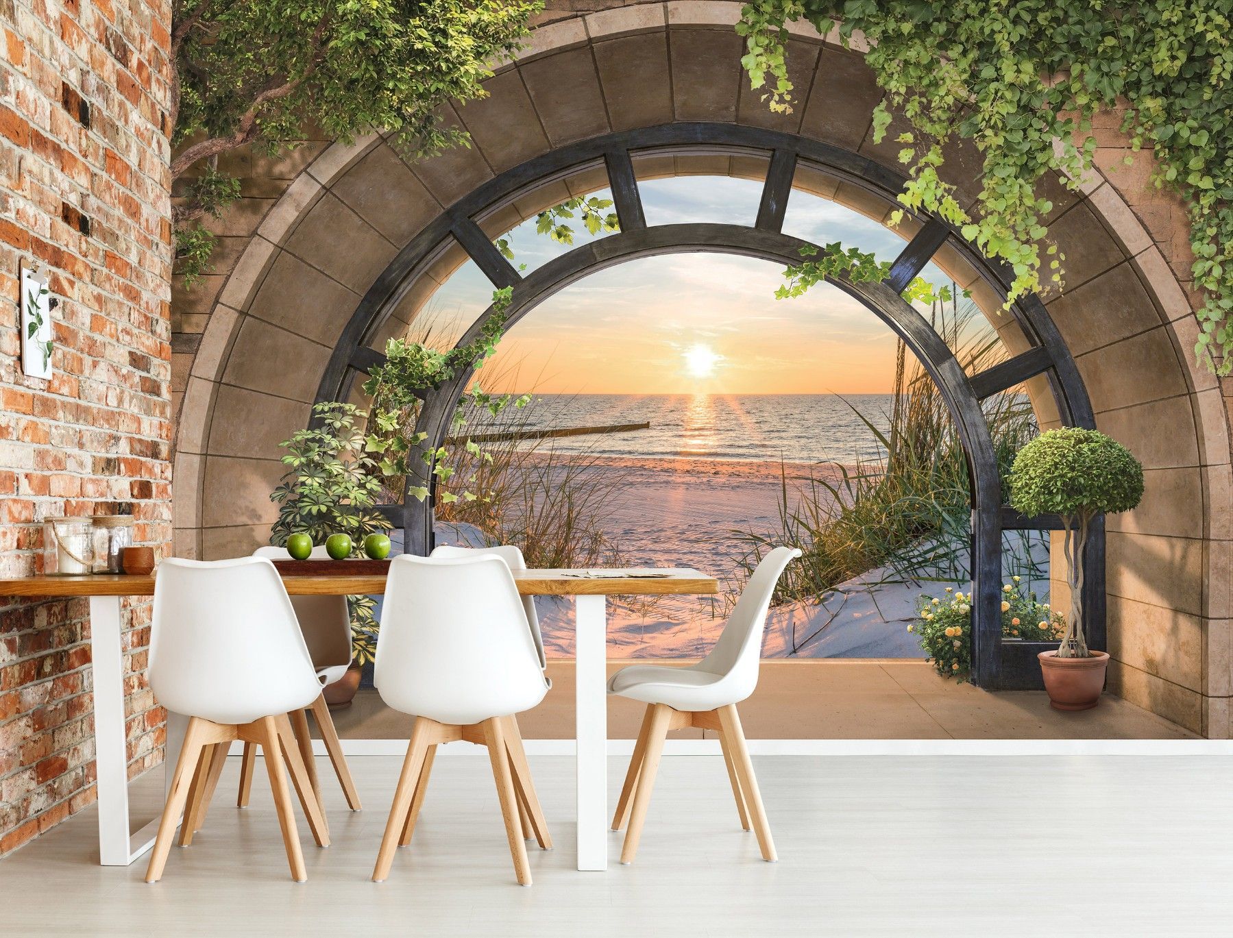 Vlies Fototapete Wald Fenster 3D EFFEKT Strand TAPETE XXL Wohnzimmer Schlafzimmer