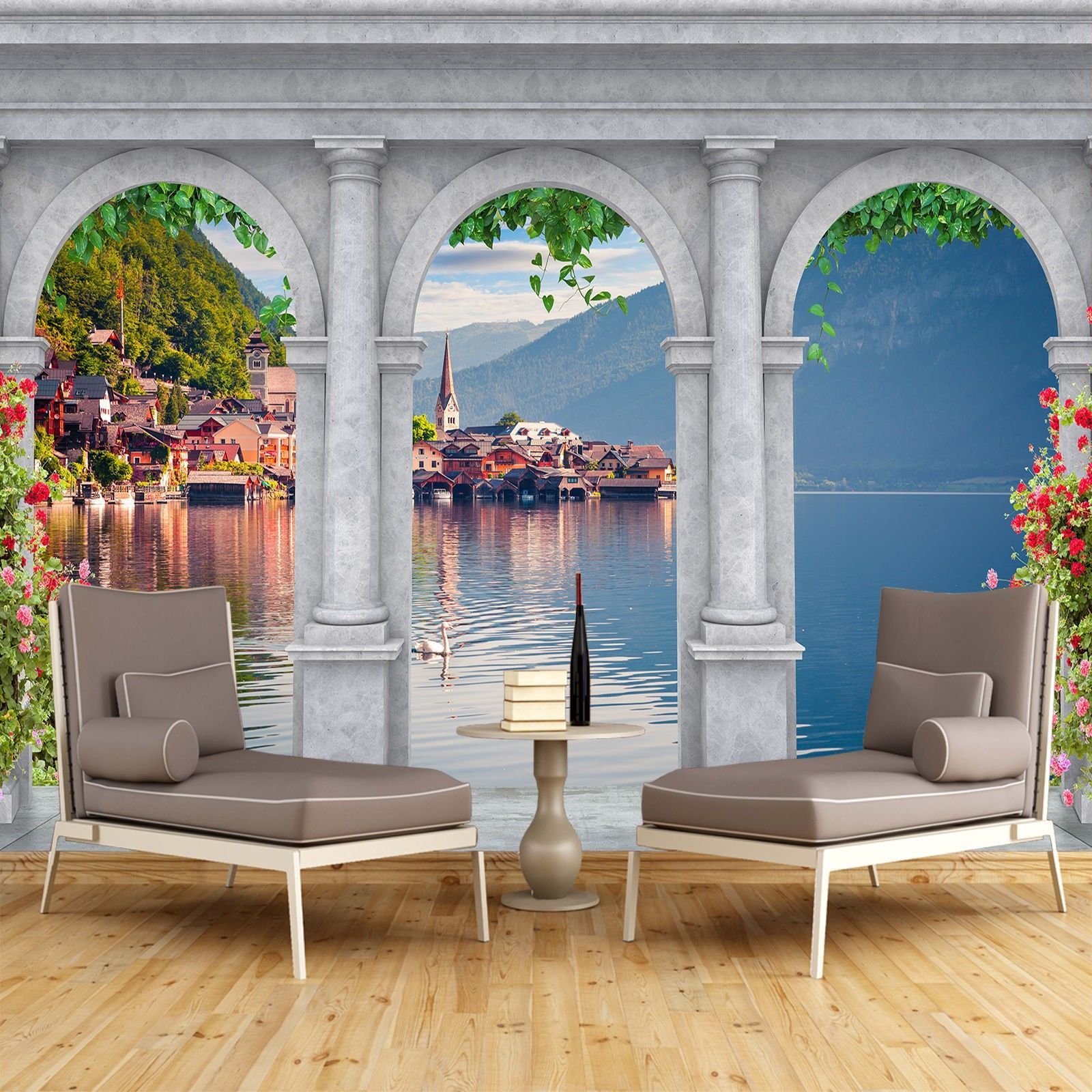 Vlies Fototapete Wandtapete Wandbilder 3d Arch Colonnade See 1530