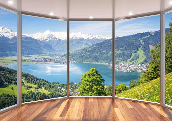 Vlies Fototapete Wandtapete Wandbilder 3d Balkon Fenster Landschaft 1942