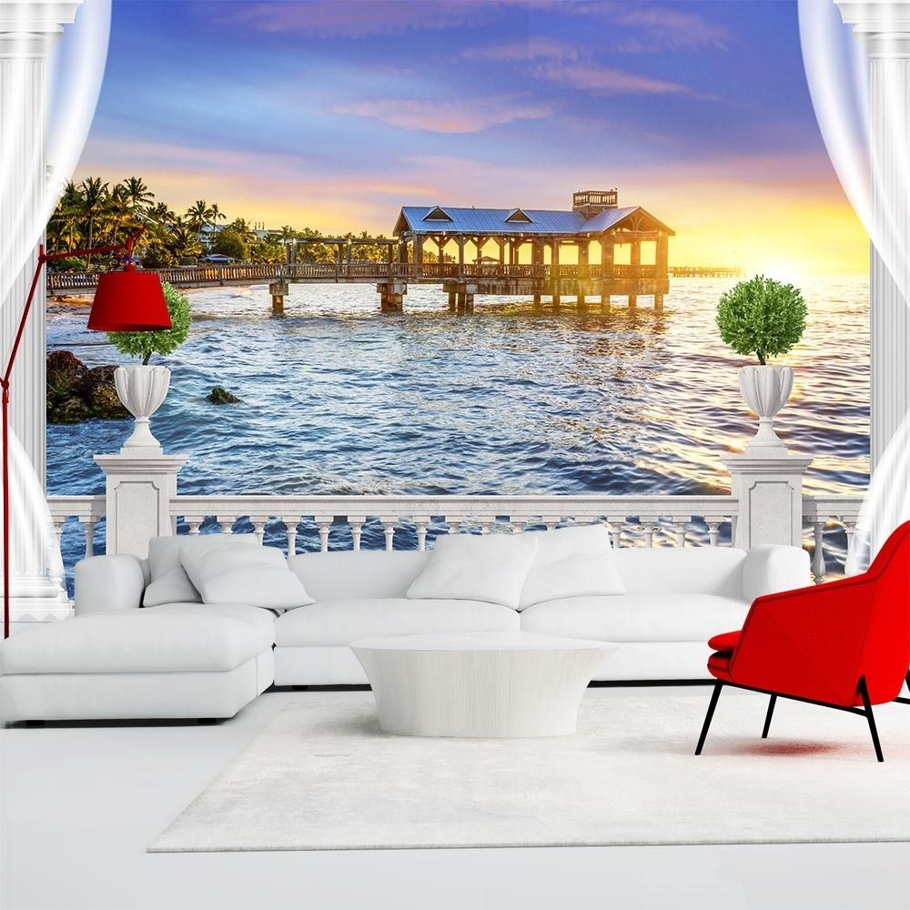 Vlies Fototapete Wandtapete Wandbilder 3D Balkon Meerblick Hintergrund 1335