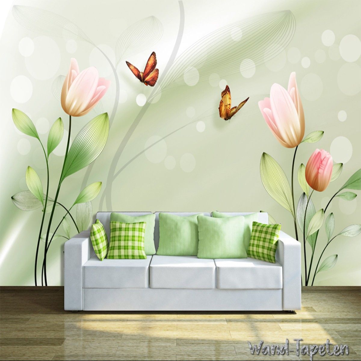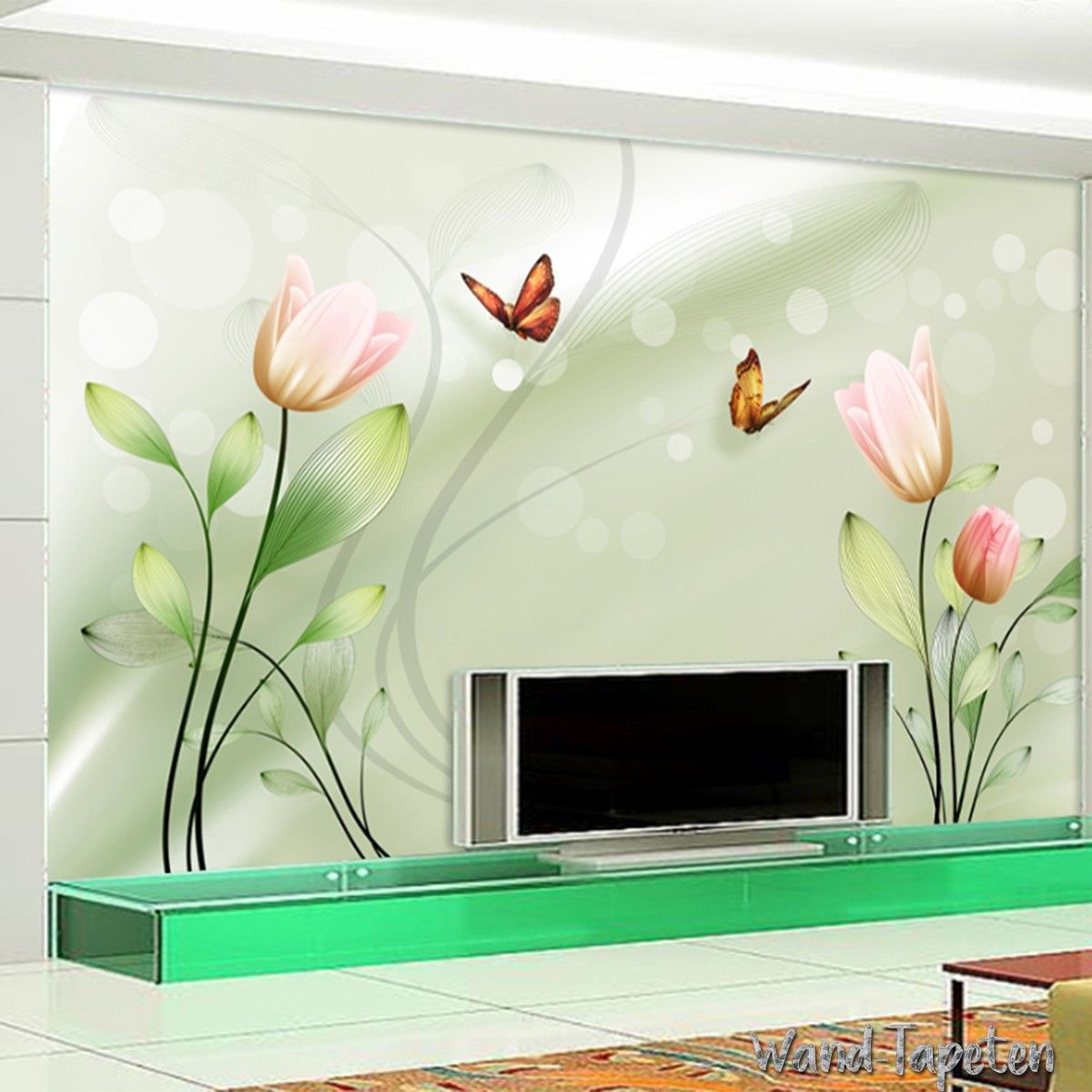 Vlies Fototapete Wandtapete Wandbilder 3D Blumen und Schmetterlingen 2701