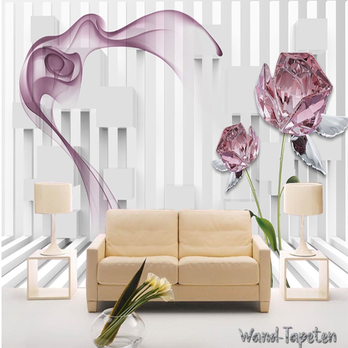 Vlies Fototapete Wandtapete Wandbilder 3D Cube Crystal Rose 2220