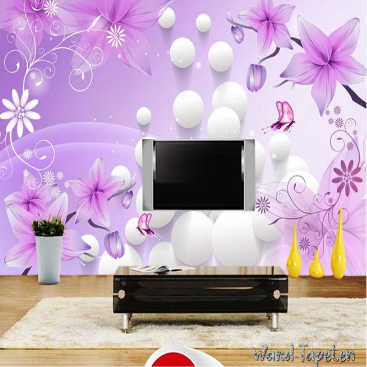 Vlies Fototapete Wandtapete Wandbilder 3D Effekt Fantasy Lila Blume 2295