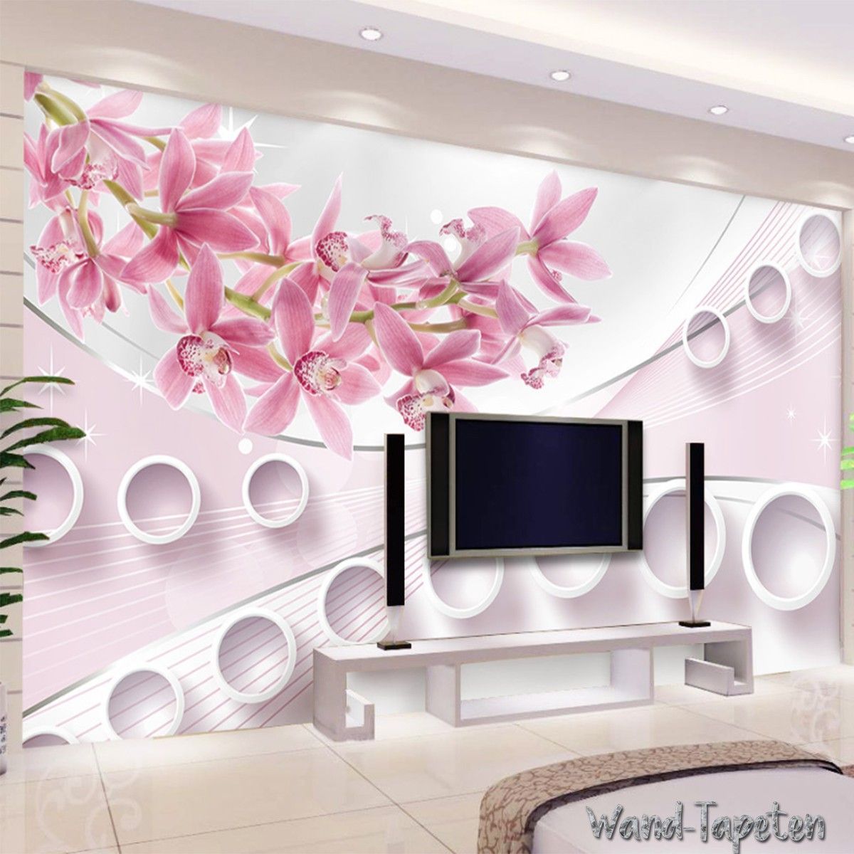 Vlies Fototapete Wandtapete Wandbilder 3D Effekt Kreis frischem Lilienrosa 3088