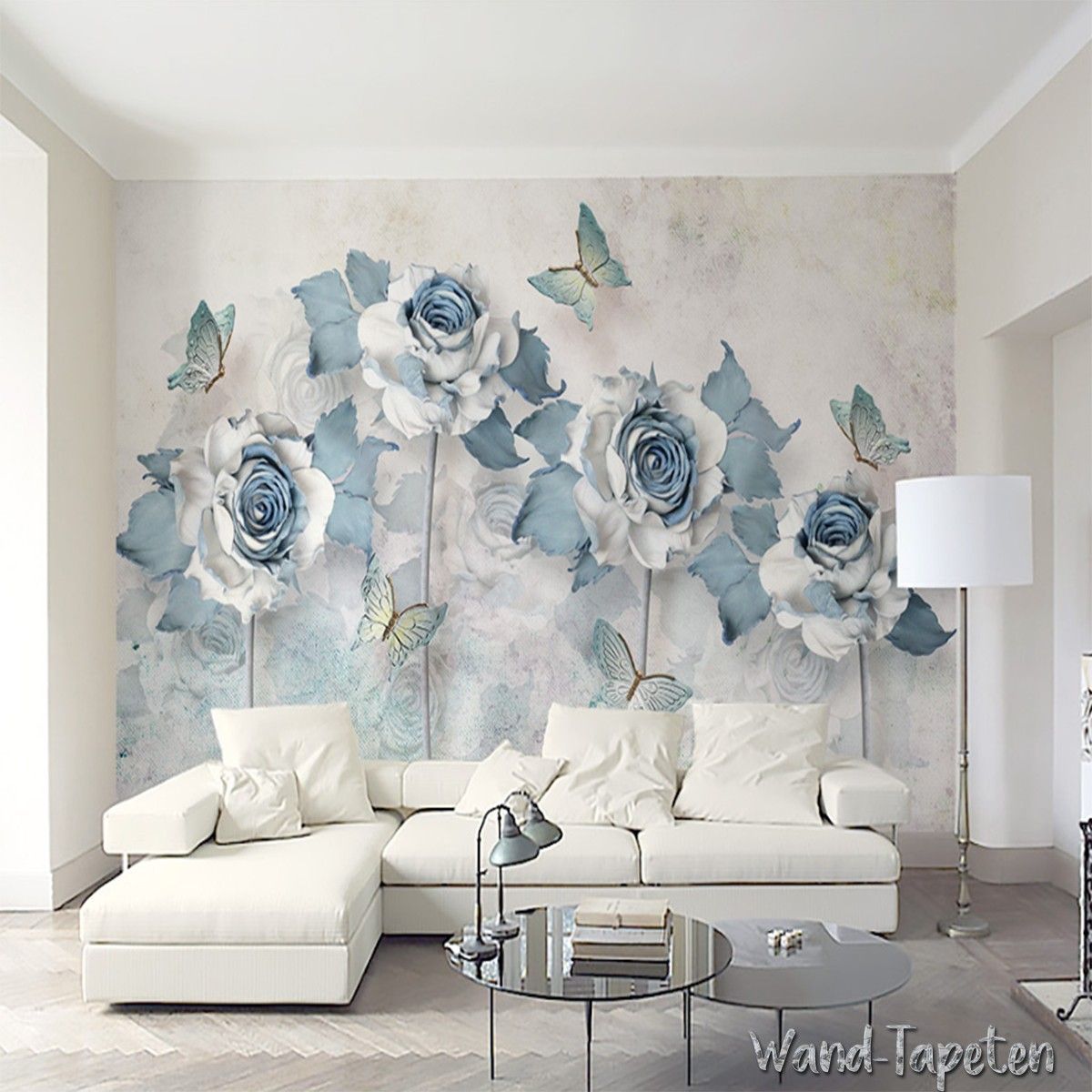 Vlies Fototapete Wandtapete Wandbilder 3D Elegante Blumen und Schmetterling 2667