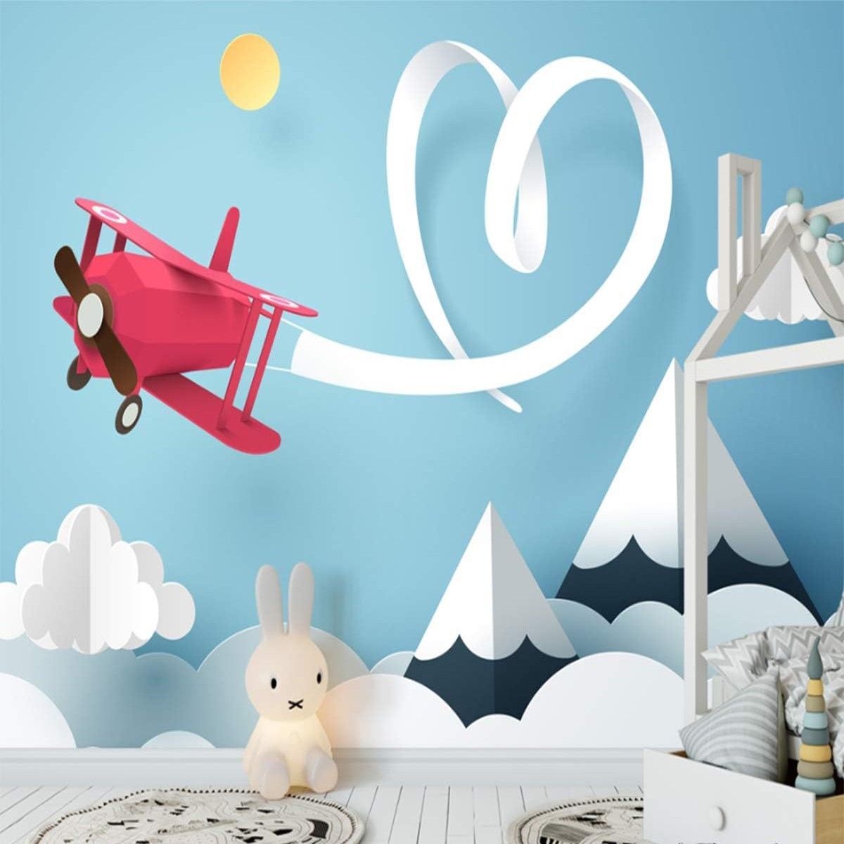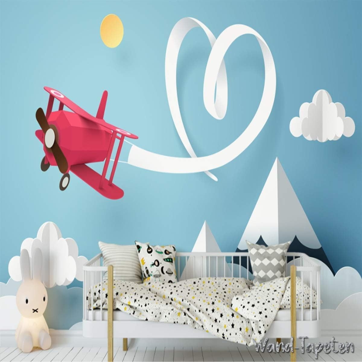 Vlies Fototapete Wandtapete Wandbilder 3D Flugzeug Herz weiße Wolke 4544