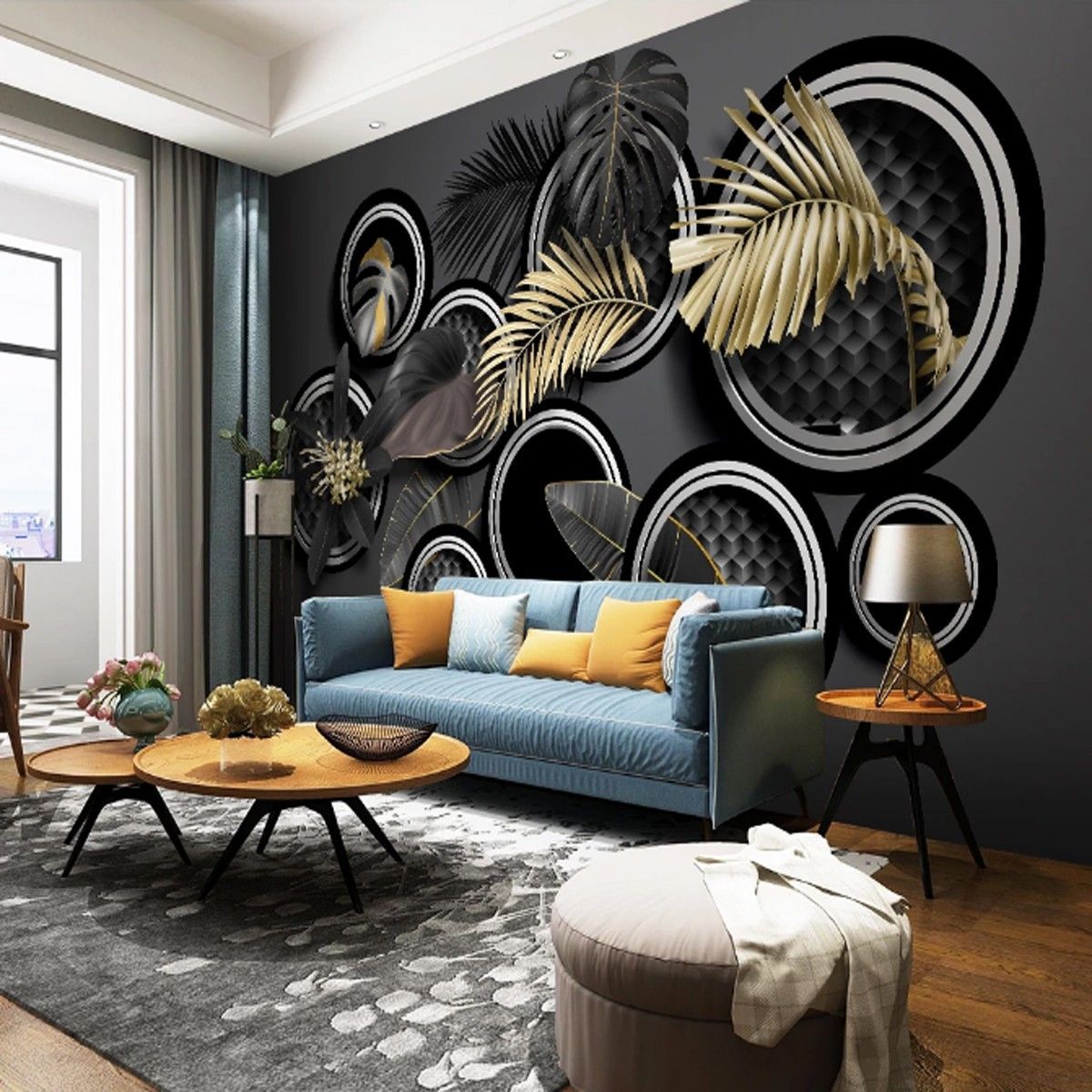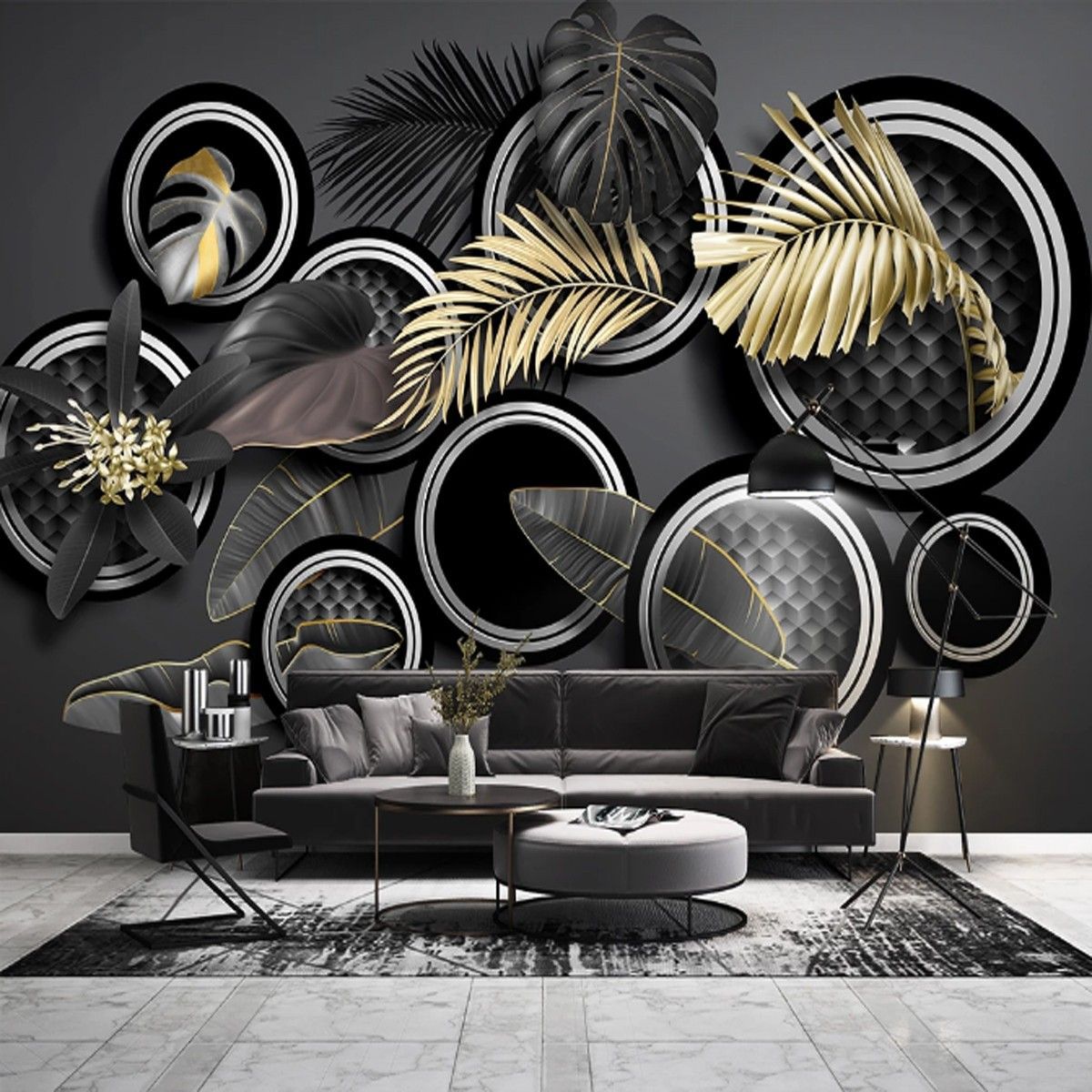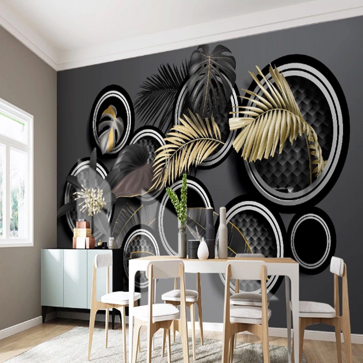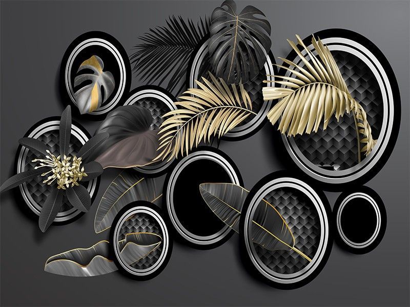 Vlies Fototapete Wandtapete Wandbilder 3d Goldenes Tropisches Pflanzenblatt 9766