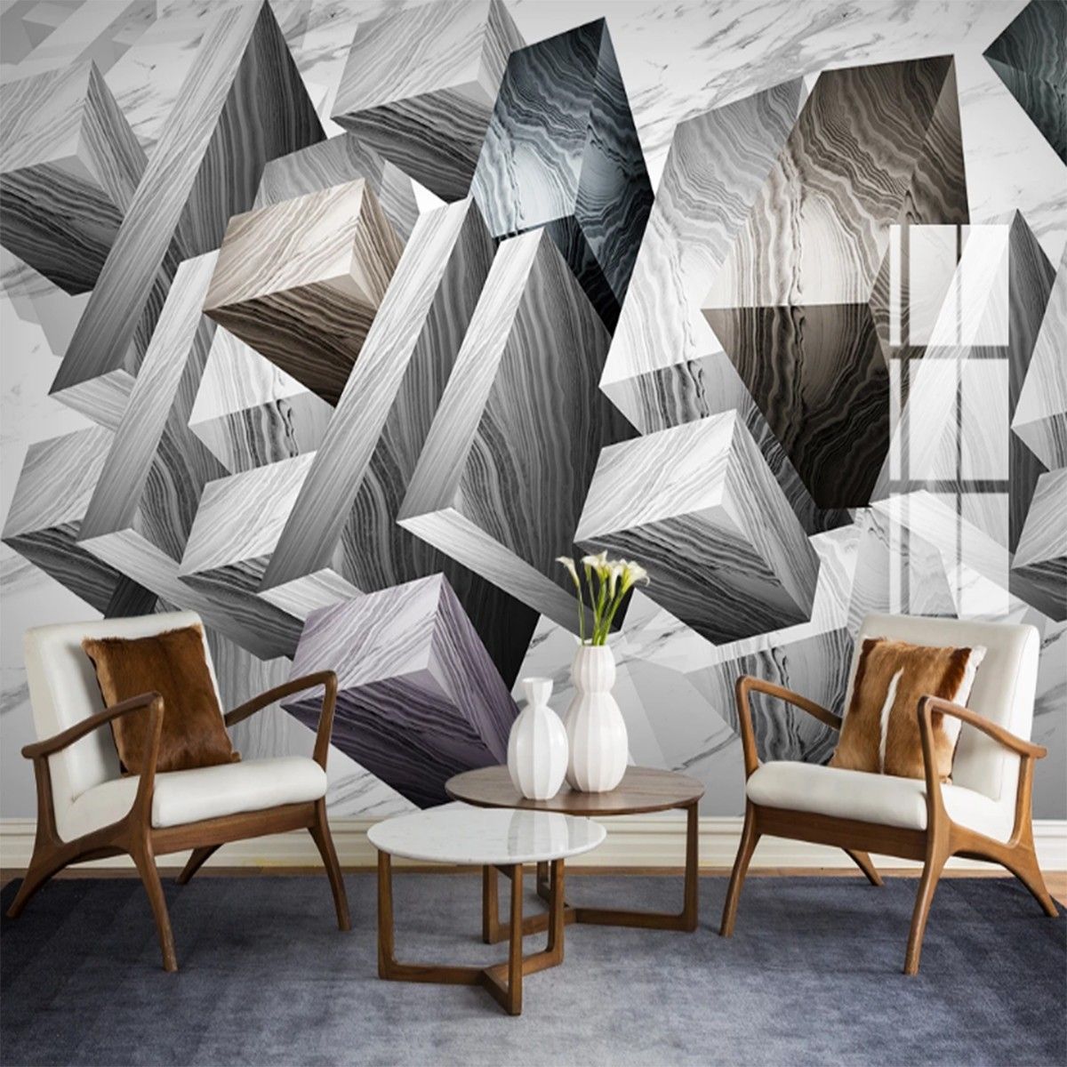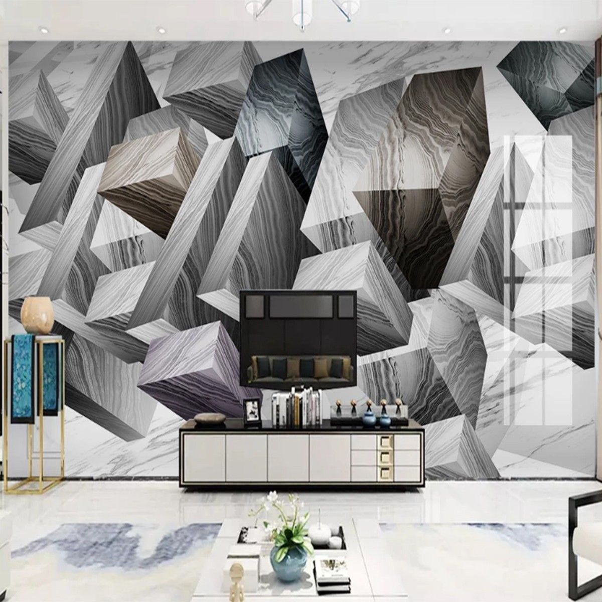 Vlies Fototapete Wandtapete Wandbilder 3D Jazzweiß Moderne Marmor 10064
