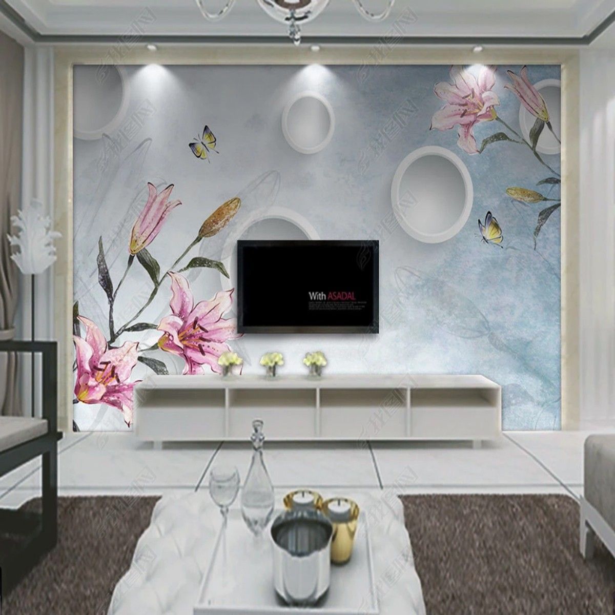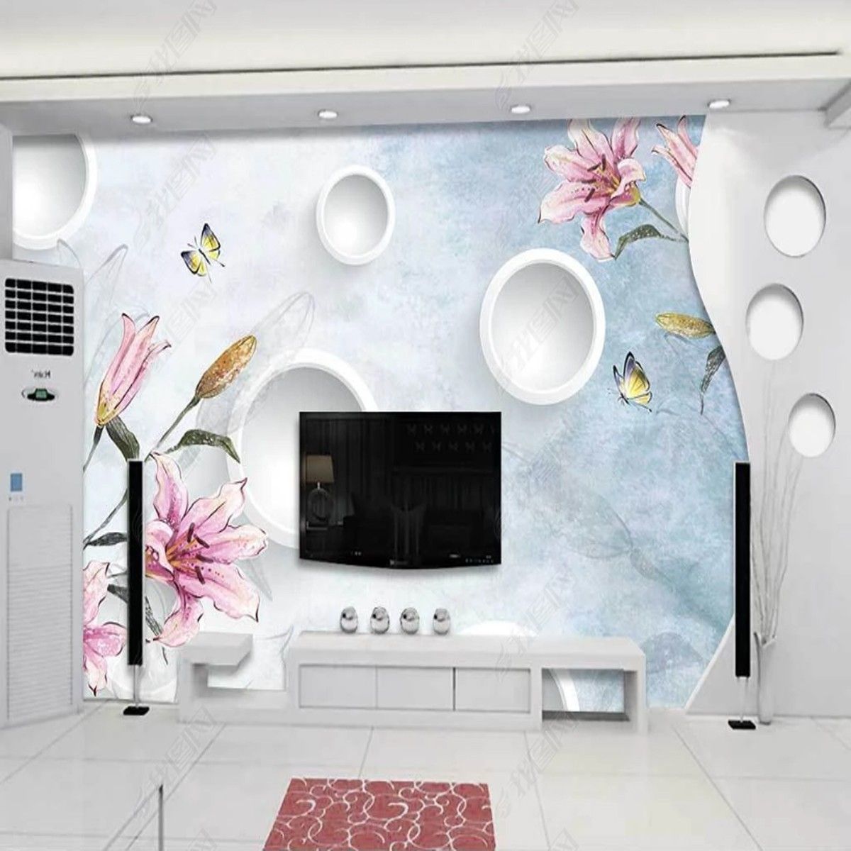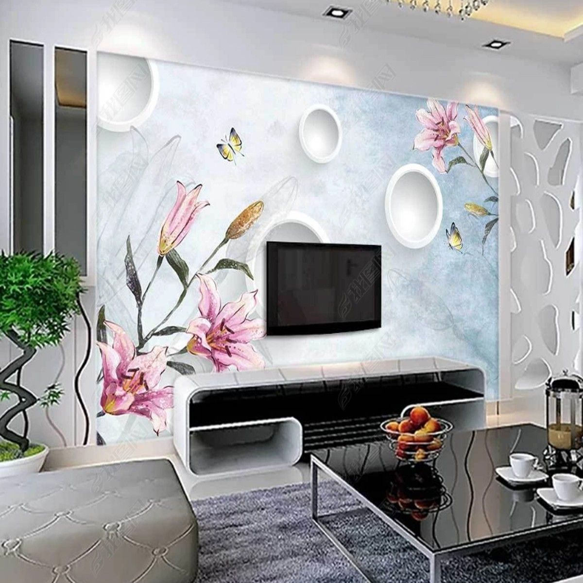Vlies Fototapete Wandtapete Wandbilder 3D Lilien Aquarell Handgemalte 11173