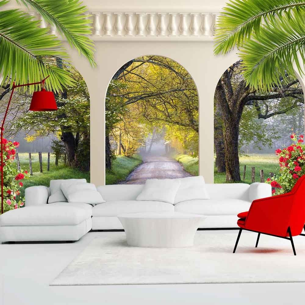 Vlies Fototapete Wandtapete Wandbilder 3D Modern Strasse Wald 1369