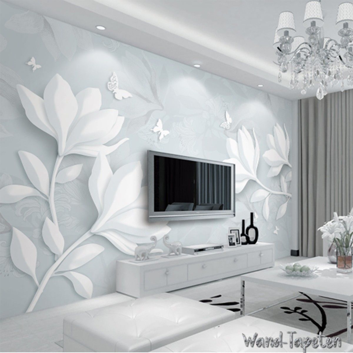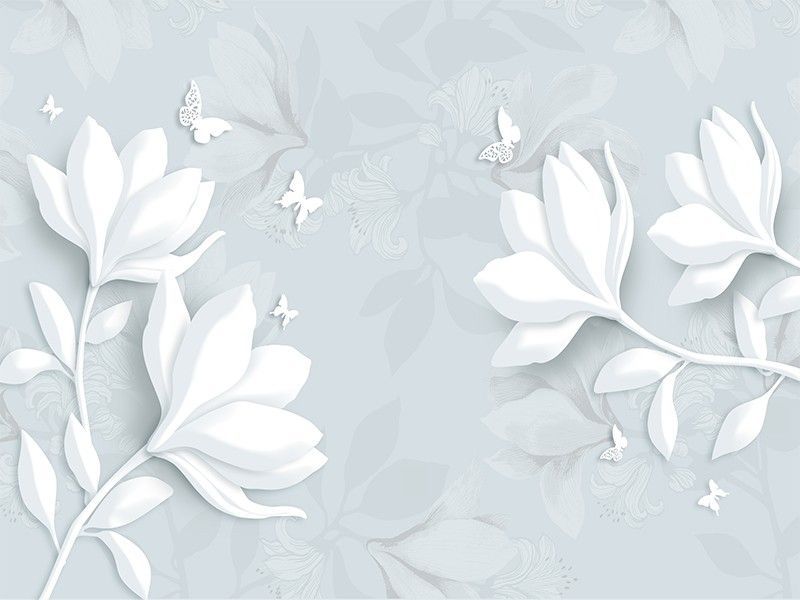 Vlies Fototapete Wandtapete Wandbilder 3D Relief Magnolien Schmetterling 2313