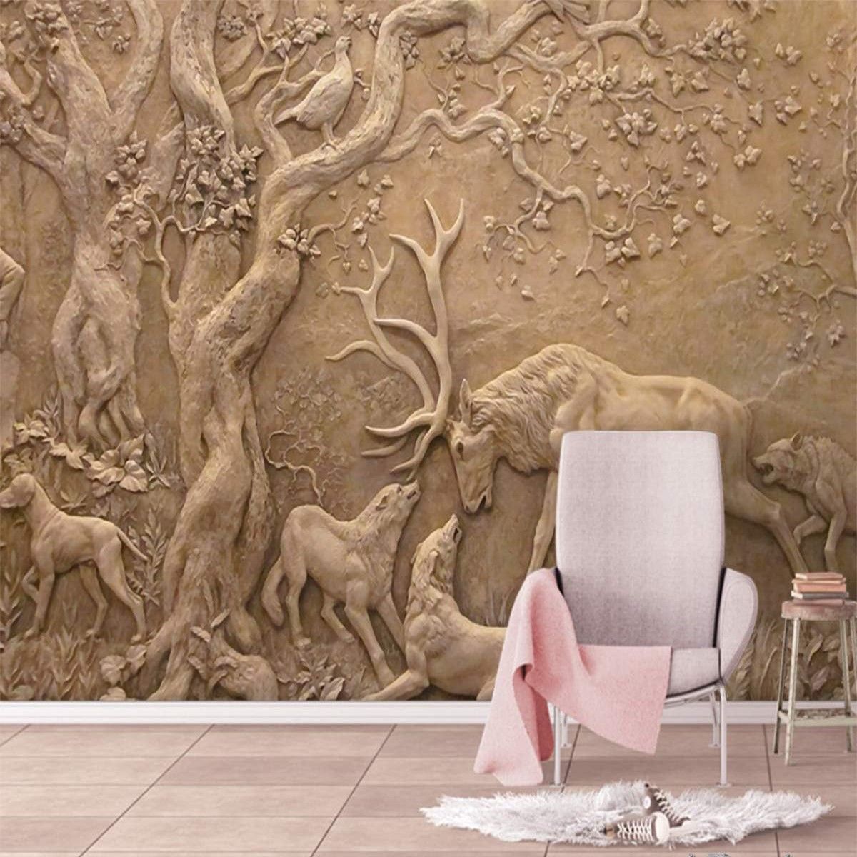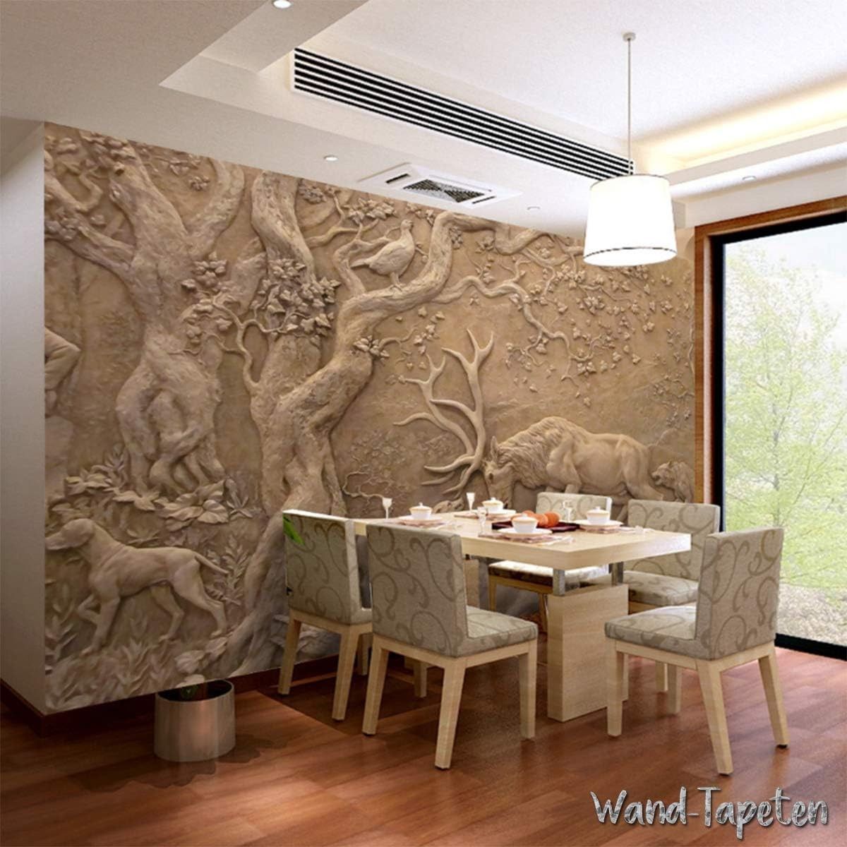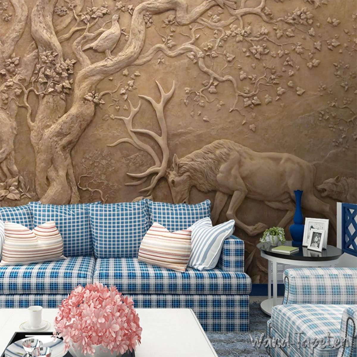 Vlies Fototapete Wandtapete Wandbilder 3D Reliefskulptur von Hirsch und Bau 4497