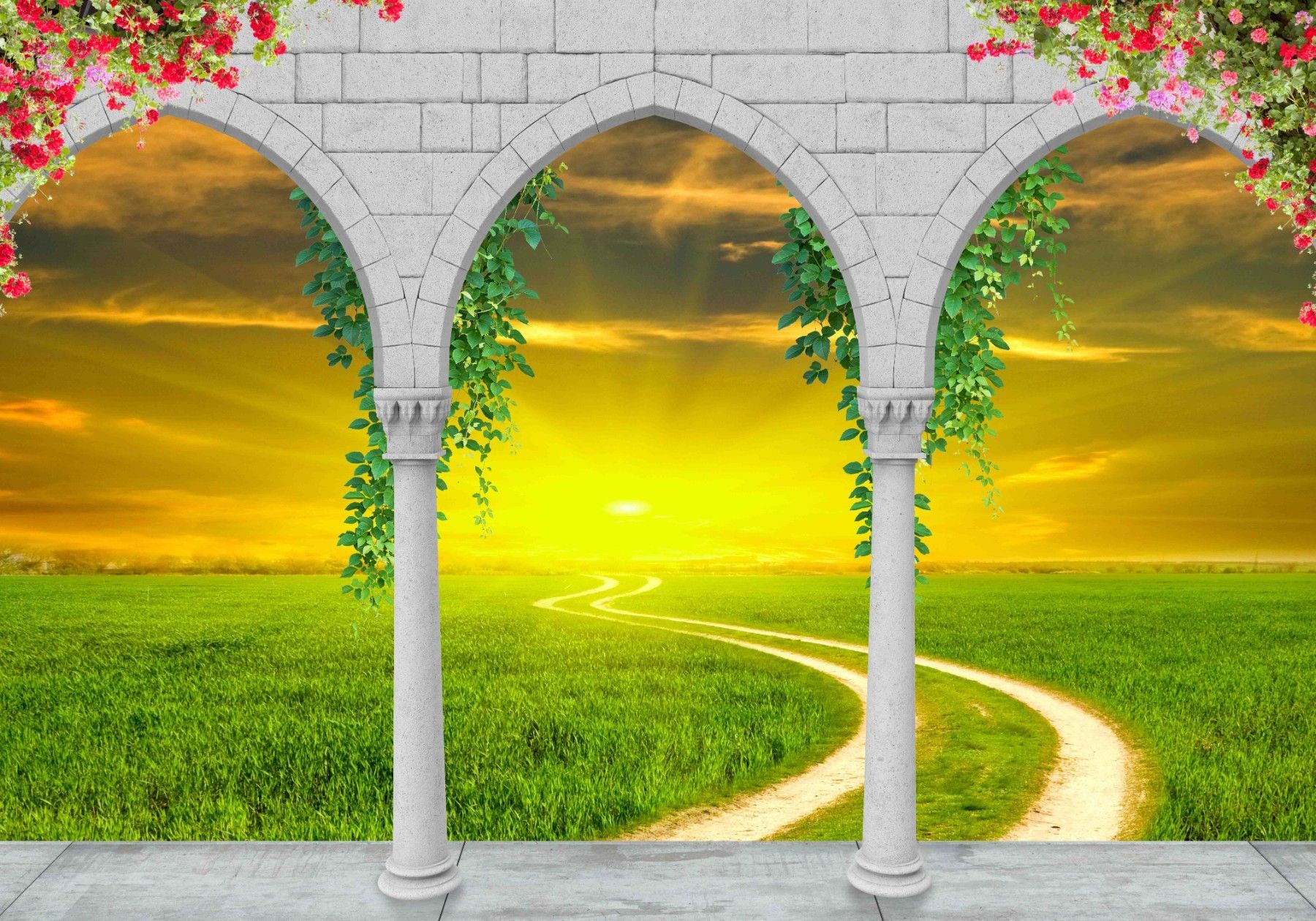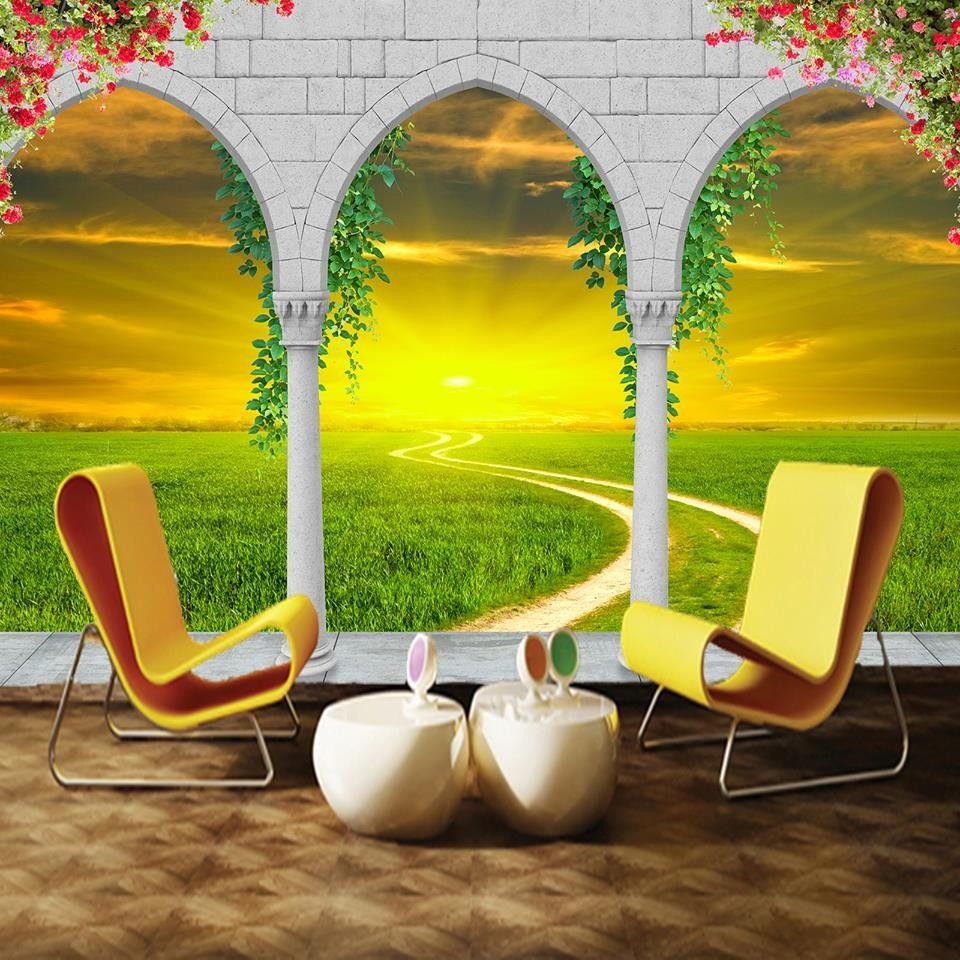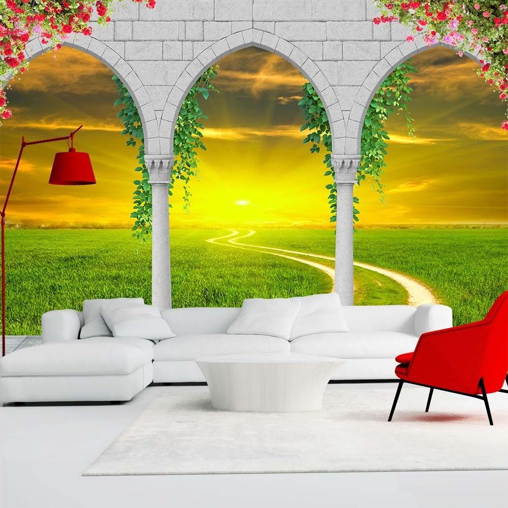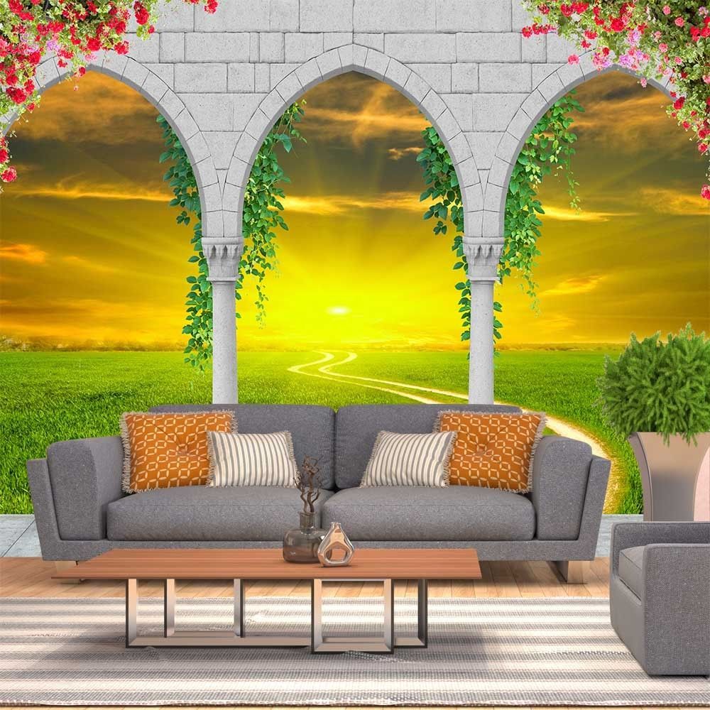 Vlies Fototapete Wandtapete Wandbilder 3d Romischer Bogen Gras Landschaft 1364
