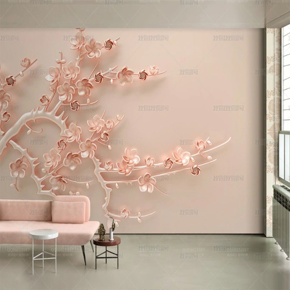 Vlies Fototapete Wandtapete Wandbilder 3D Roségoldene Pflaumenblütenzweig 4419
