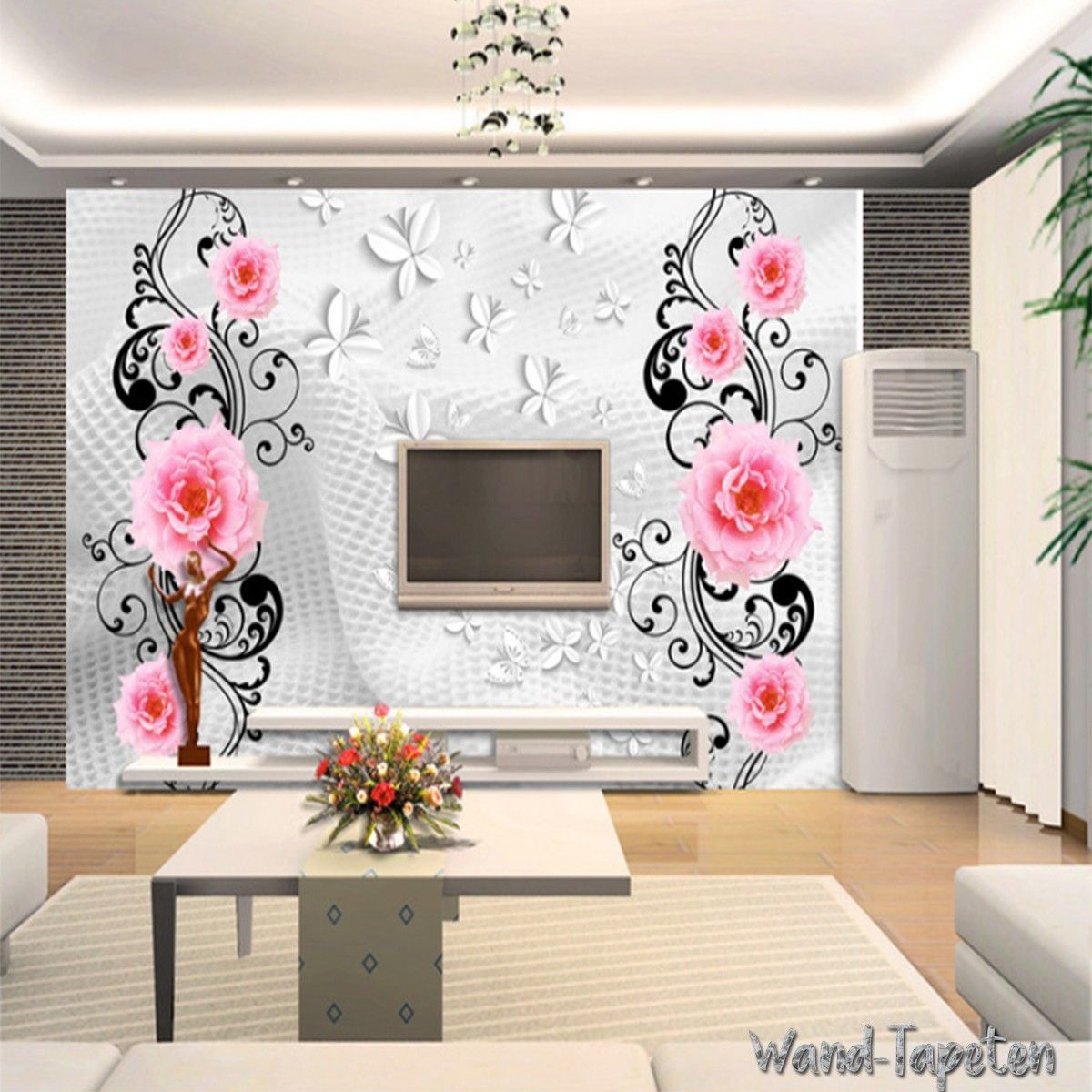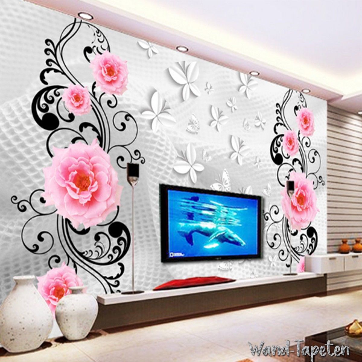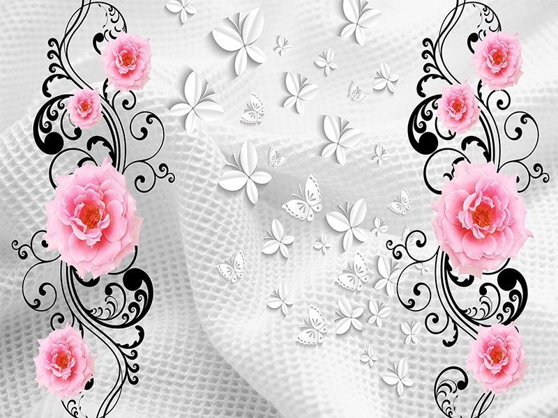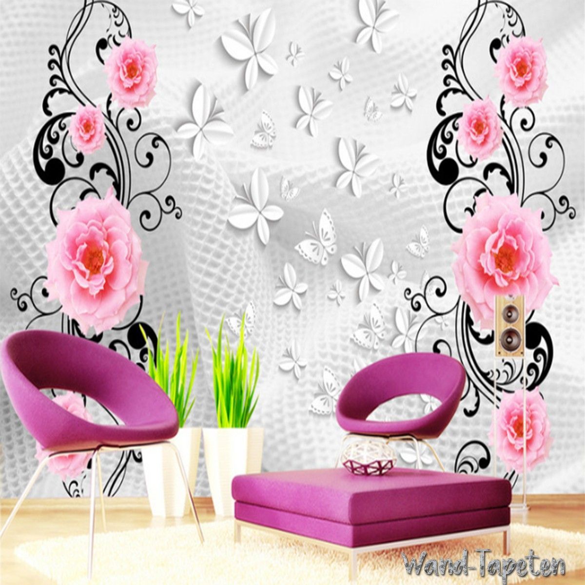 Vlies Fototapete Wandtapete Wandbilder 3D Rosen Blumen Schmetterling 2209