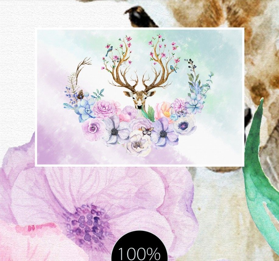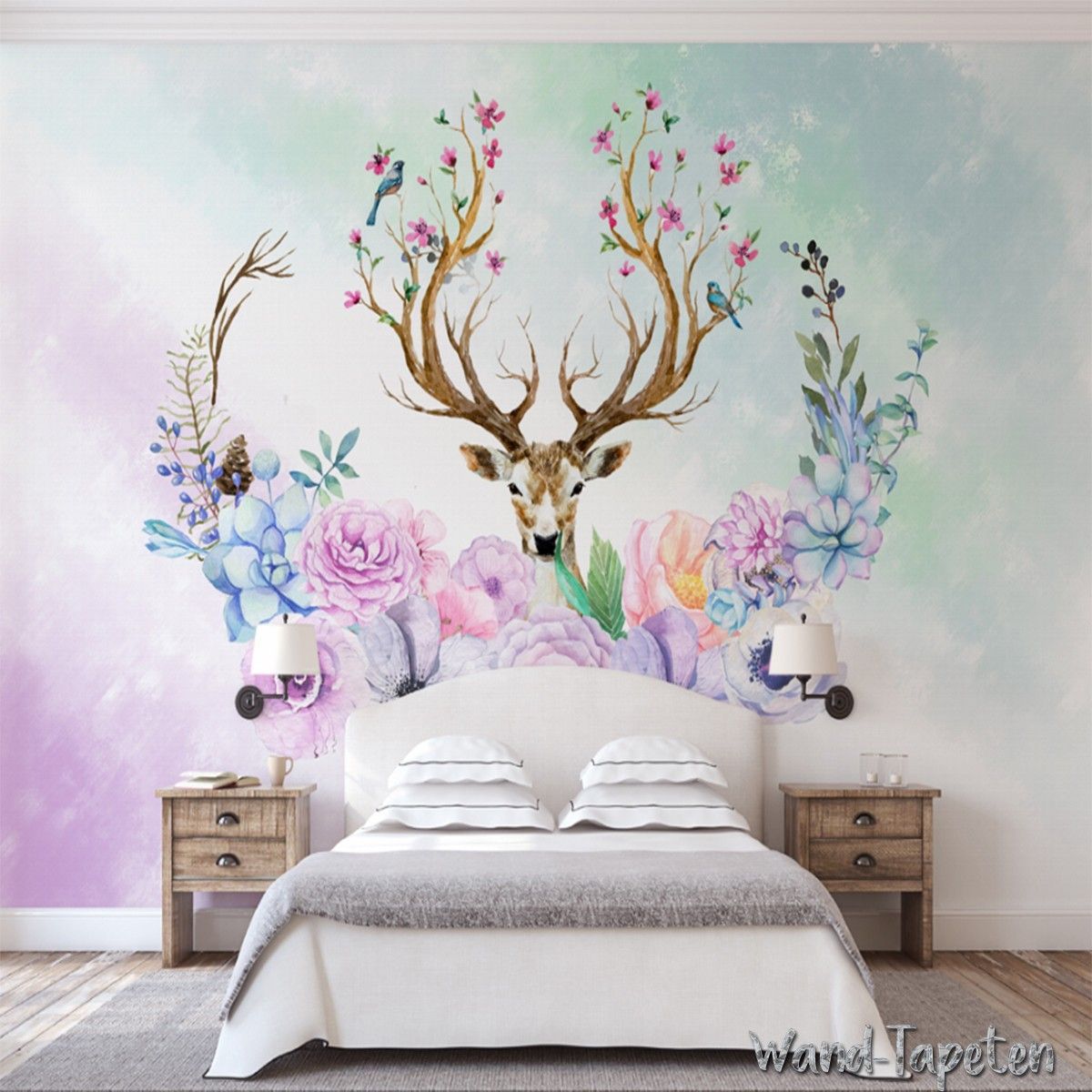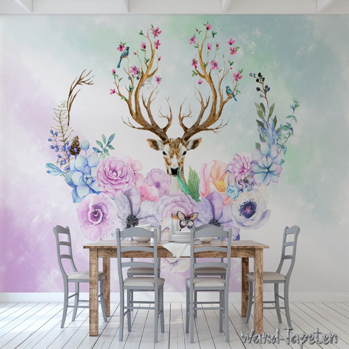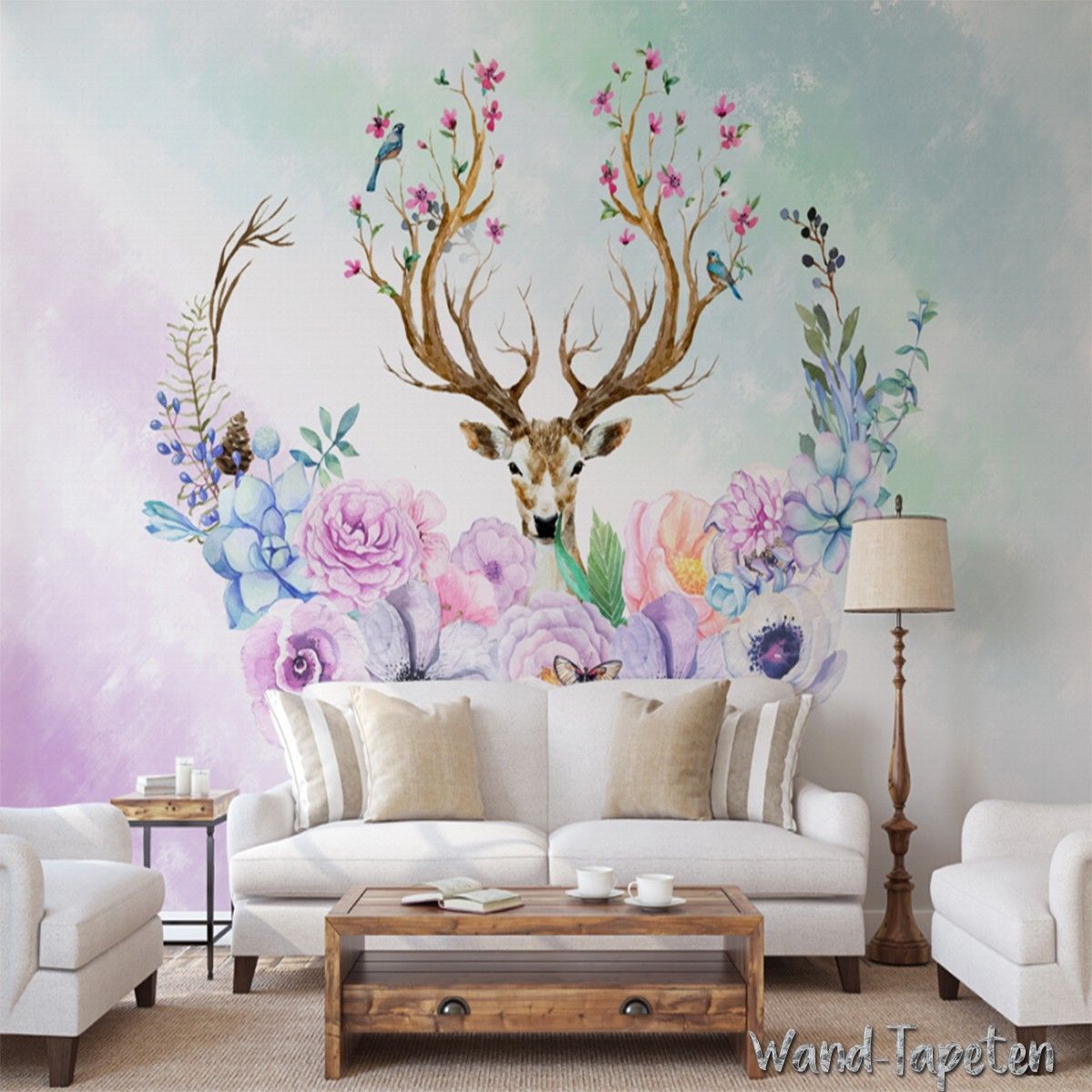 Vlies Fototapete Wandtapete Wandbilder Amerikanische Hirschkopf Blume 2885