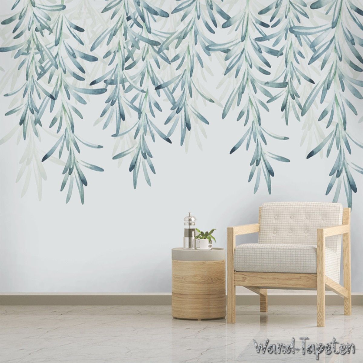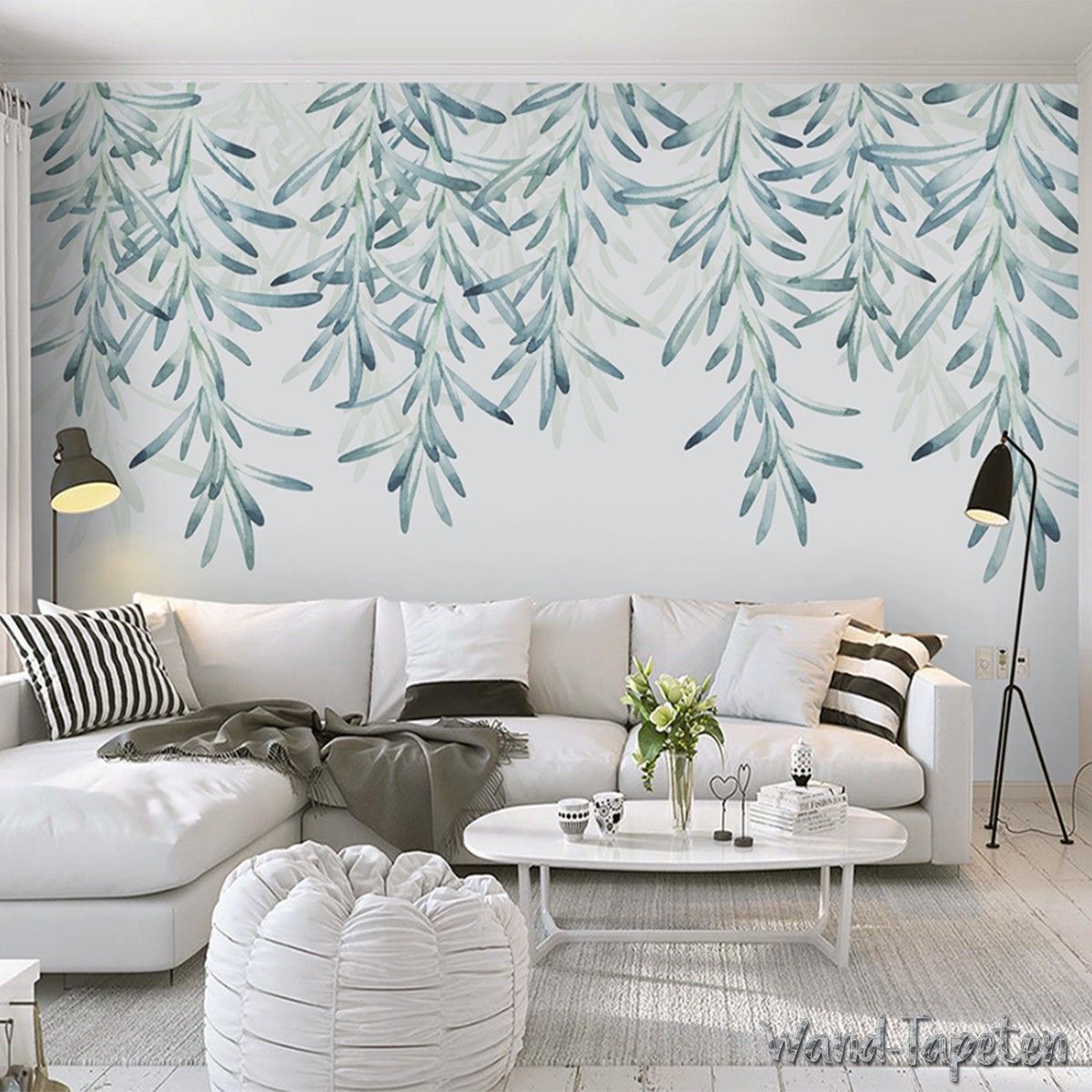 Vlies Fototapete Wandtapete Wandbilder Aquarellstil Frischen Grünen Blätter 4175