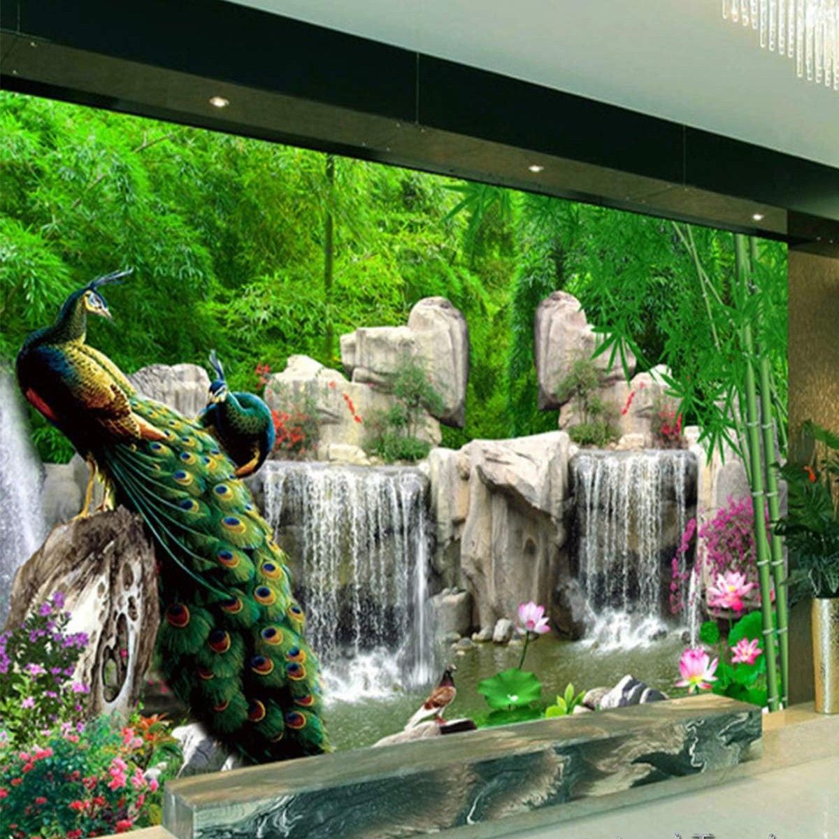 Vlies Fototapete Wandtapete Wandbilder Bambuswald Steingarten Pfauen 4577