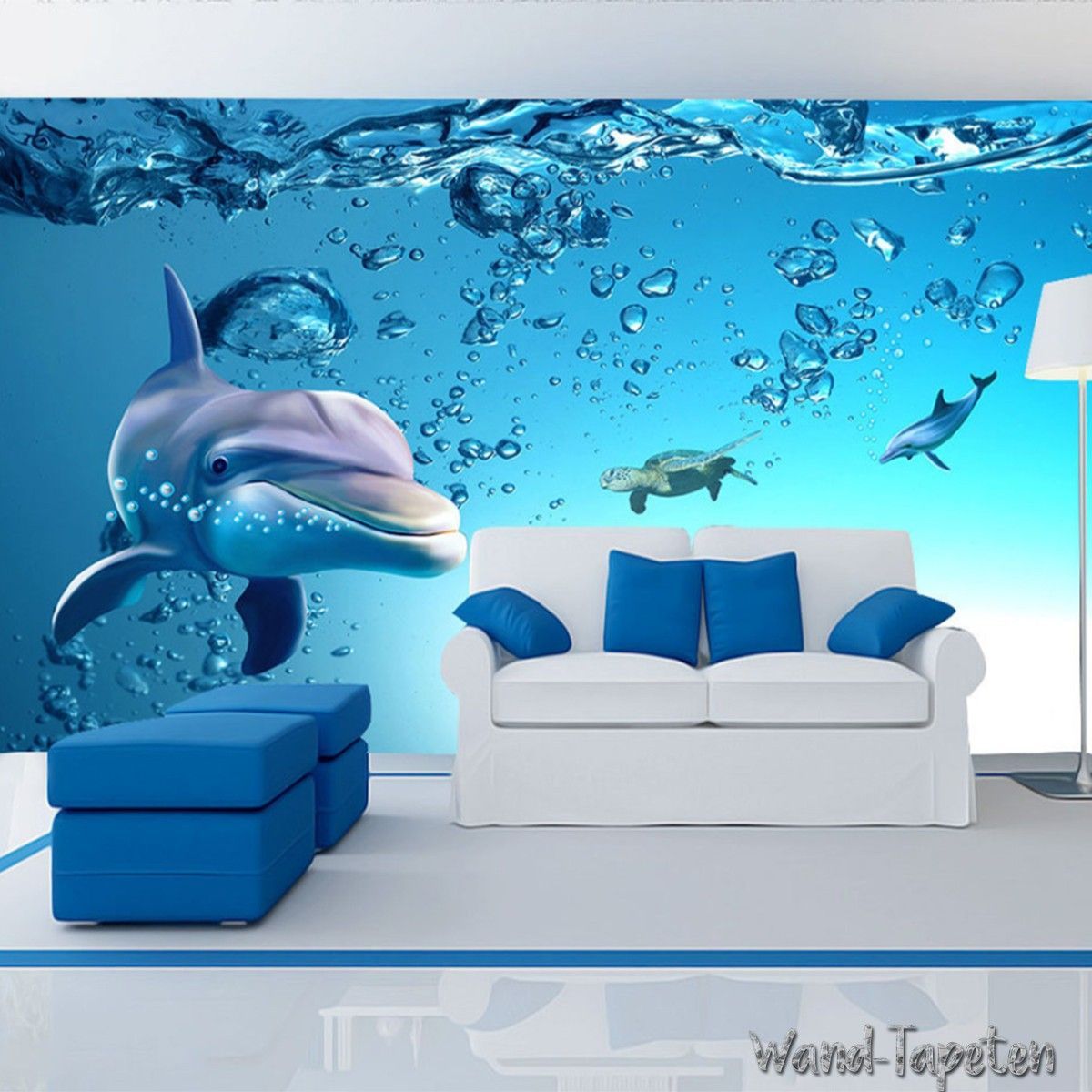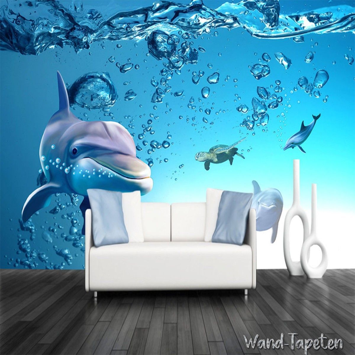 Vlies Fototapete Wandtapete Wandbilder Blauer Ozean 3D Delphin 2806