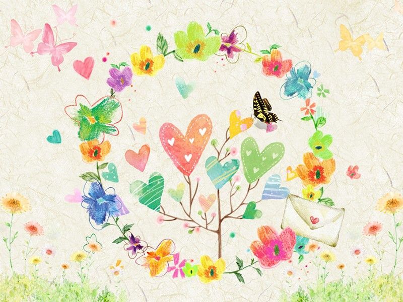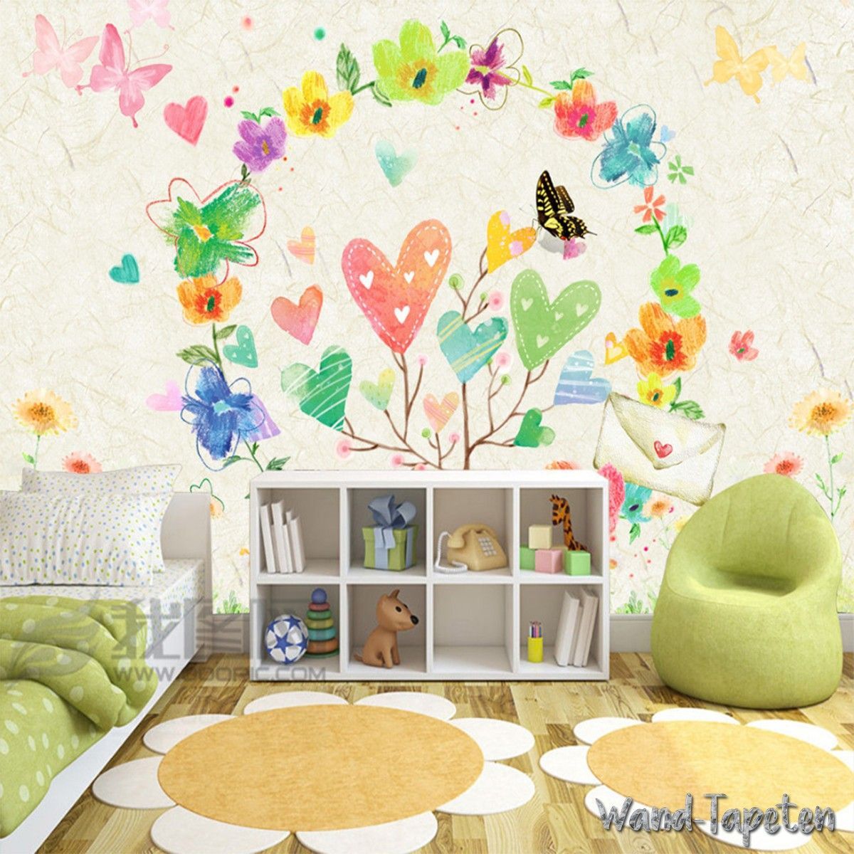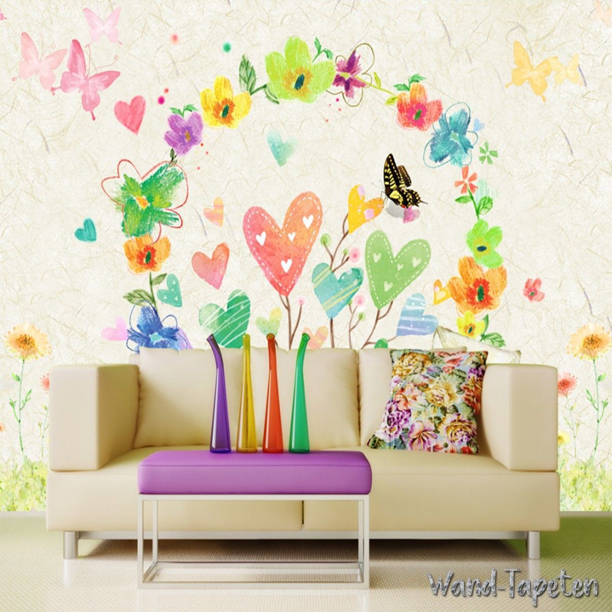 Vlies Fototapete Wandtapete Wandbilder Cartoon Blumen und Schmetterlings 4024